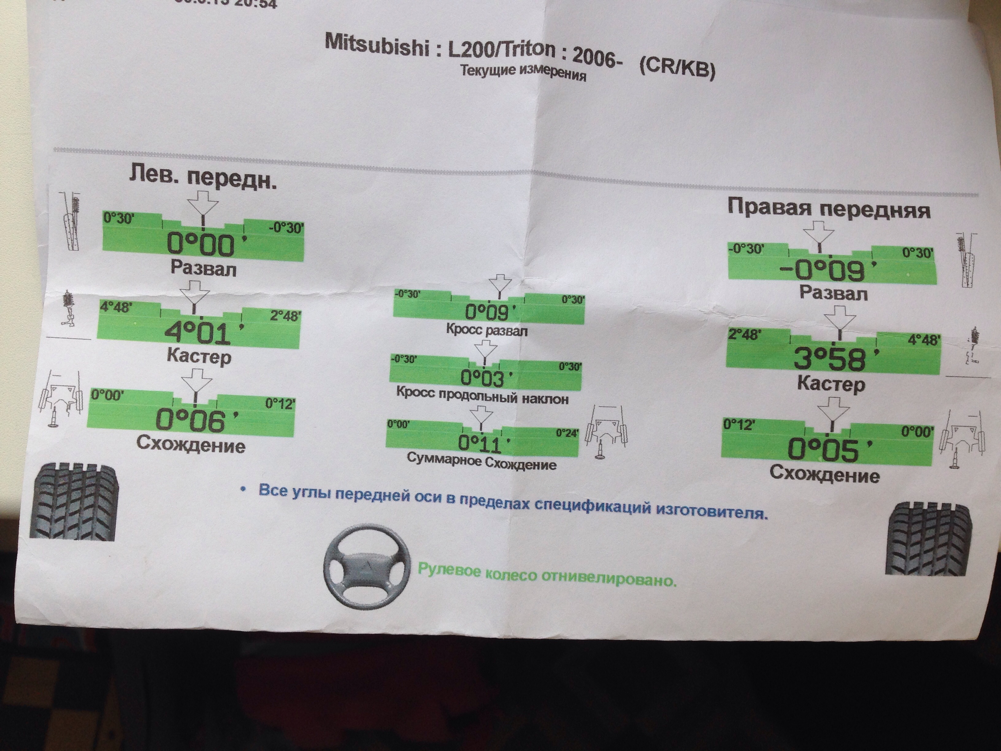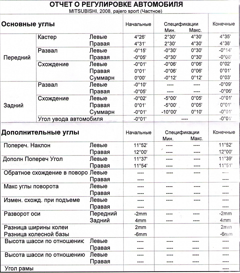 А кто скажет сход- развал делают по л200 или на паджеро спорт свои параметры??? Мне 3 раза делали по л200! Позвонил в рольф восток, приемщик сказал типо для спорта свои параметры! Может у меня изза того, что по л200 делали и тянет все время в право? Незнаю че и делать уже
