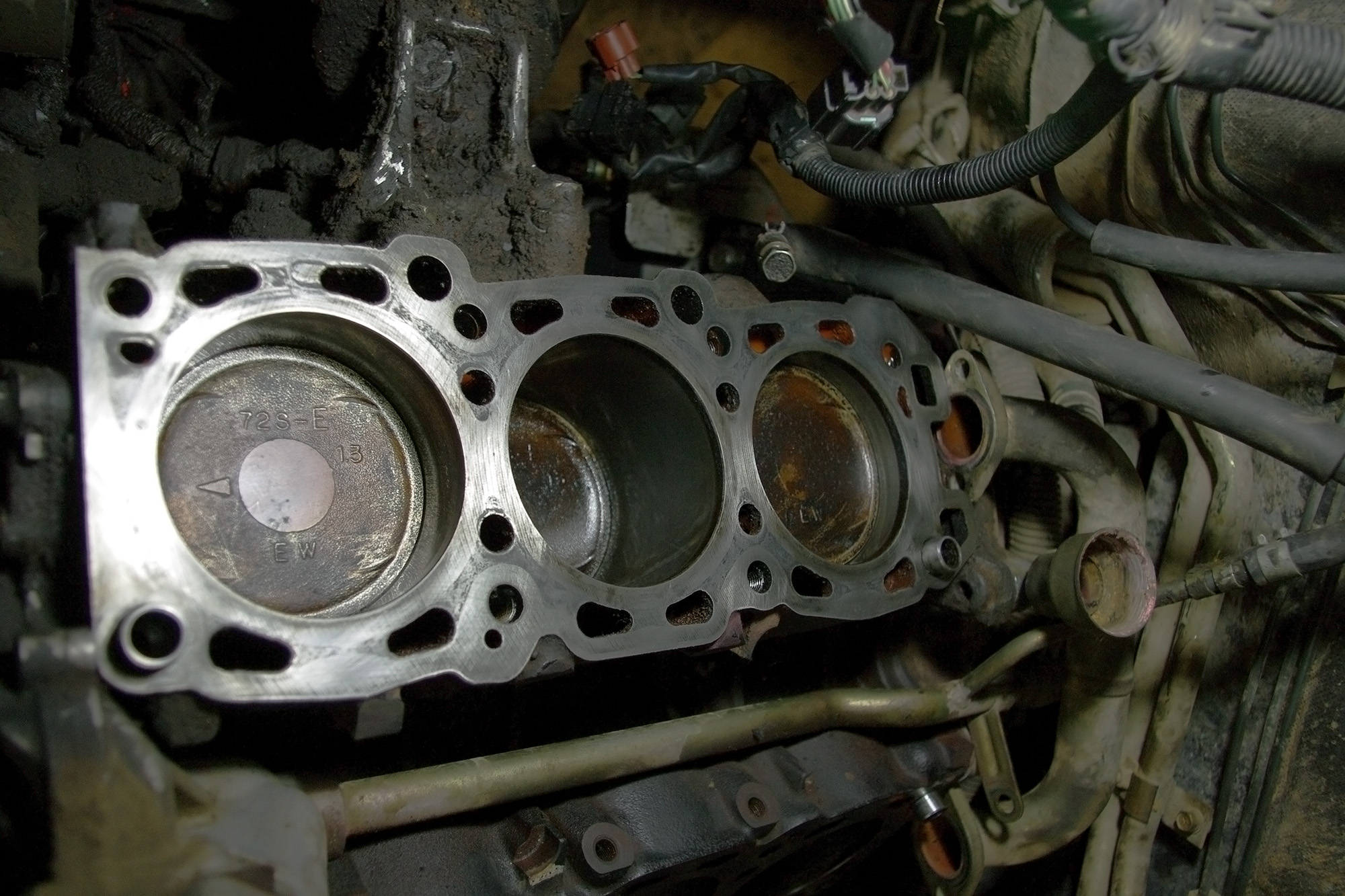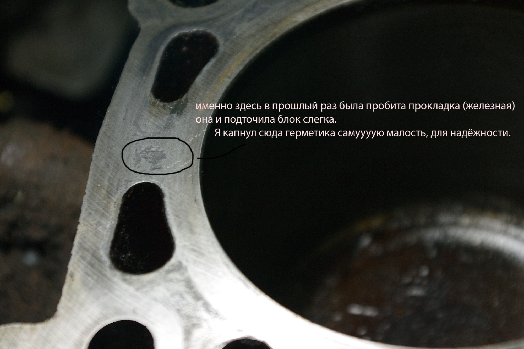 . Замерил компрессию. Левая голова (стоим у радиатора) вся по 11.5 кгс, правая 8,5 кгс. Потом подлил маслеца чутку и тож все по 11,5 даванули. Средни поршень (тот что новый поставил) аж 14 показал, потом перемерил и 11,5. На днях соберу. По ходу натяжитель поменял и ролик натяжной. На блоке были маленькие раковинки. Не стал срезать. Как подумал что это ещё на долго, плюнул. Они еле заметны, даже не раковинки а отметина чтоли от прокладки. Прокладки похоже немного другие разрезы имеют. Хотя по каталогу брал. Например в блоке и головки у цилиндра вокруг полукруги для тосола, а на прокладке там просто две дырки одна побольше (там где полукруг начинается) и маленькая в конце (там где полукруг кончается). Вообщем в блоке больше отверстия, а прокладка имеет просто дырочки , все сходятся по размеру да вот некоторые меньше. Потому и получаются такие тосольные "намывы" чтоли. Я шкуркой на 400 теранул, поснимал всю эту наплывность грязную, + от старой прокладки что то типа герметика осталось. Вот фотки.