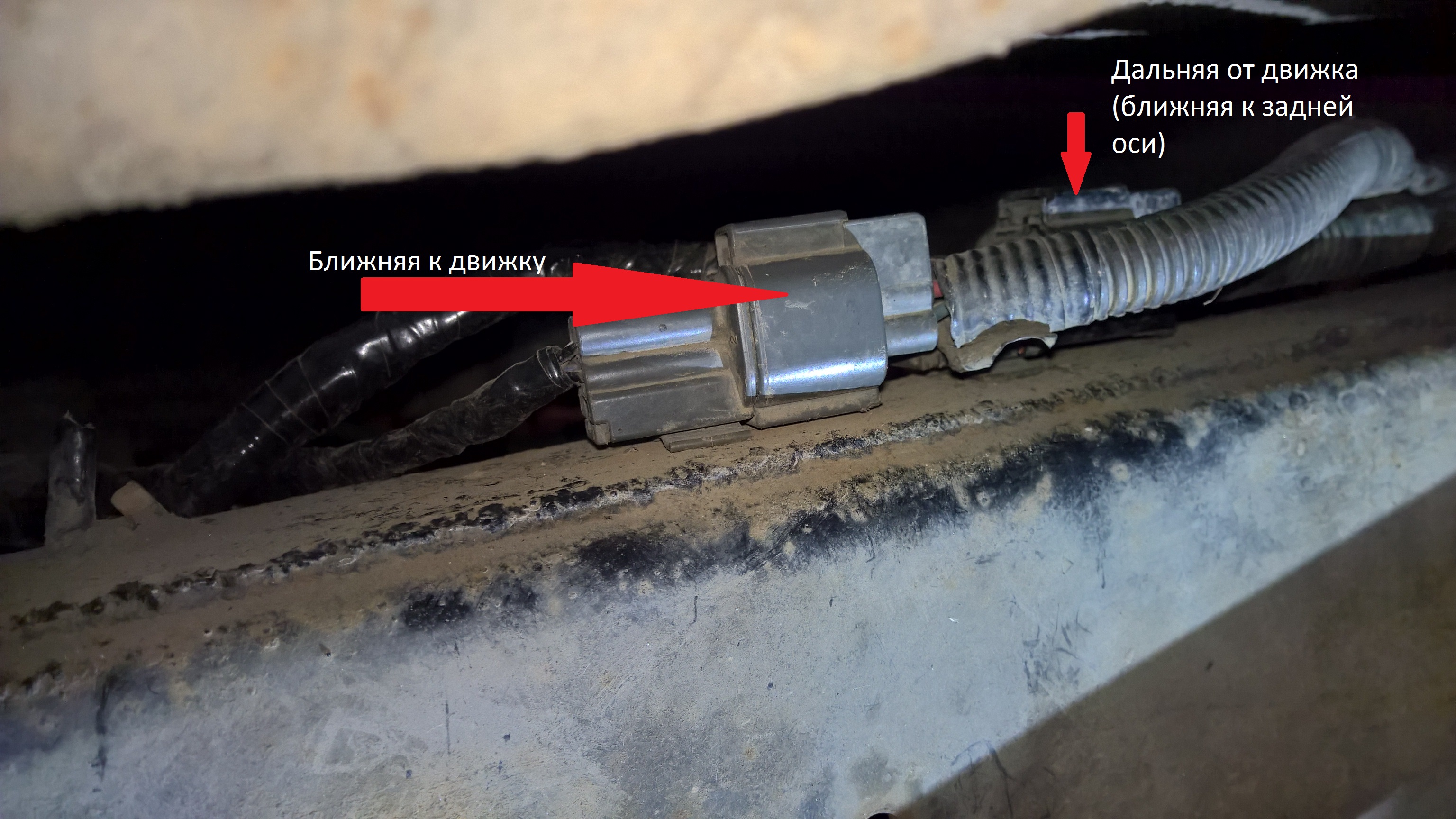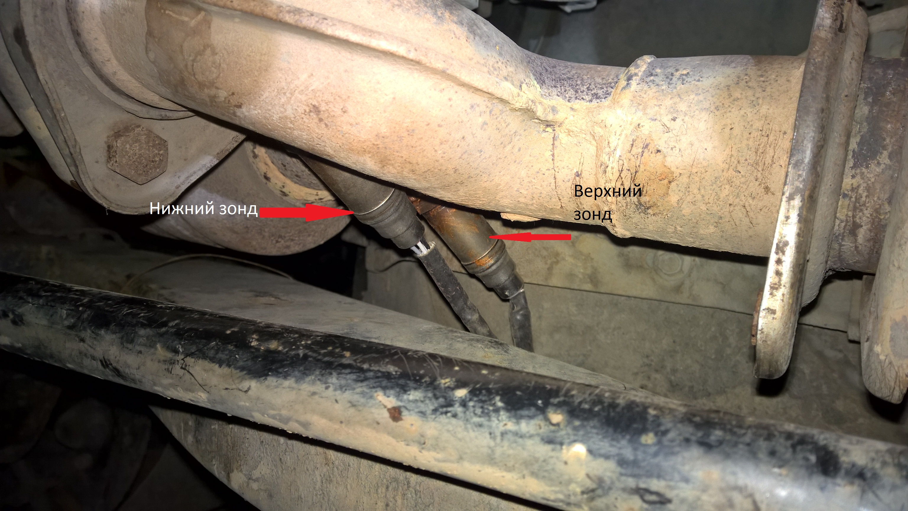 Подскажите кто помнит, по фото. Нижний зонд идет на фишку ближе к задней оси??? Или ближе к движку??? Просто боюсь перепутать местами, что бы не было: Верхний зонд с левой стороны снимает показания, а нижний снимает показания с правой стороны, то есть с разных труб. Прошу не пинать )))