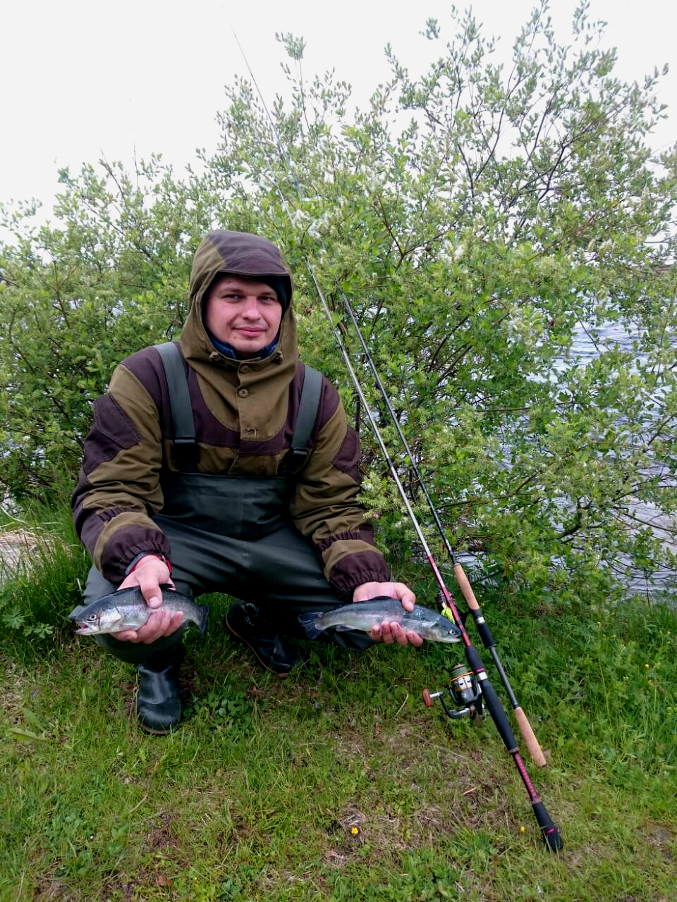 Несмотря на высокий уровень воды в реке, рыбалка идет)
