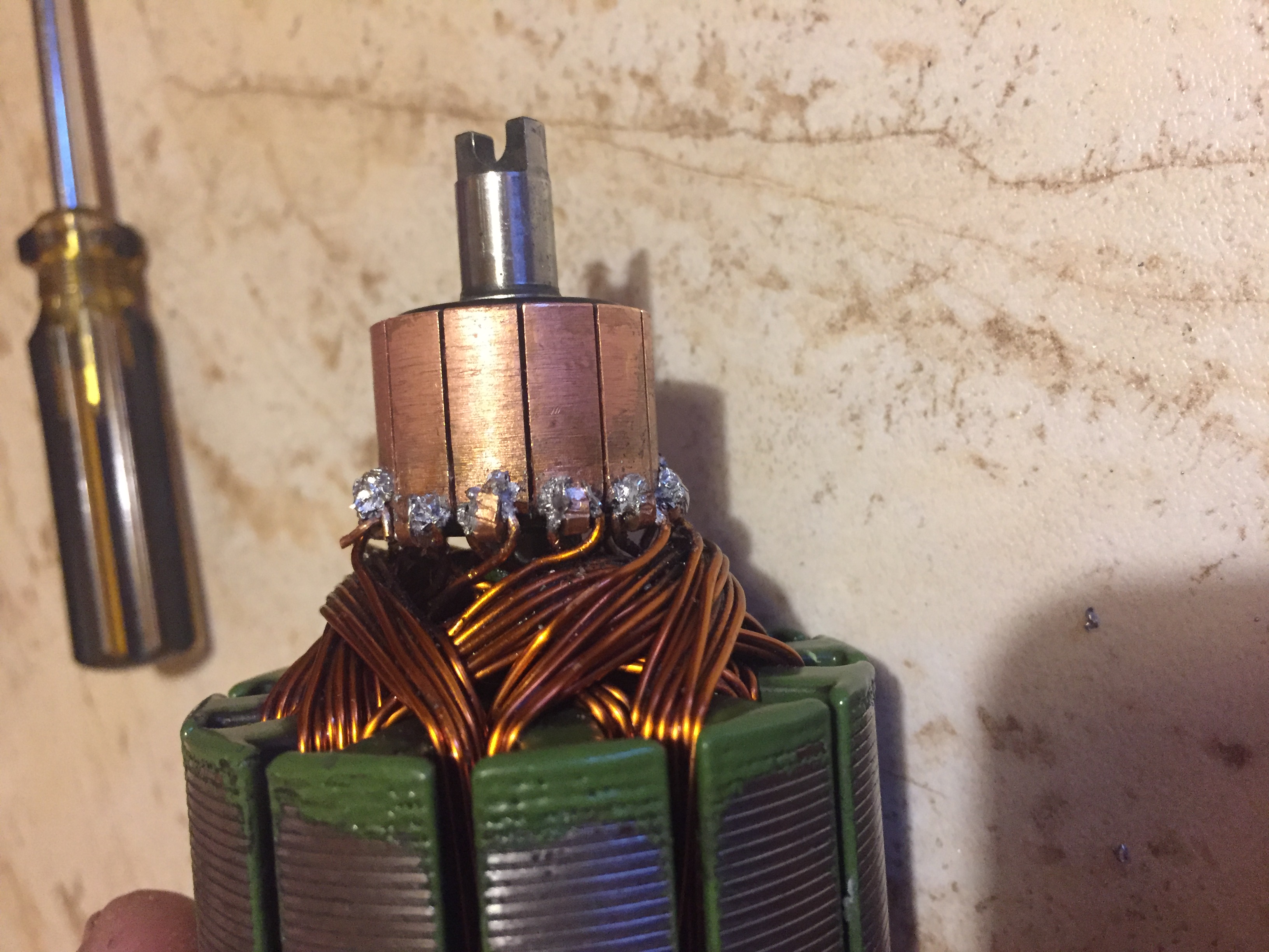 Вобщем не было времени фотать-сильно нужно было быстро починить! Поменял коннектор якоря, обжал, собрал-работает!