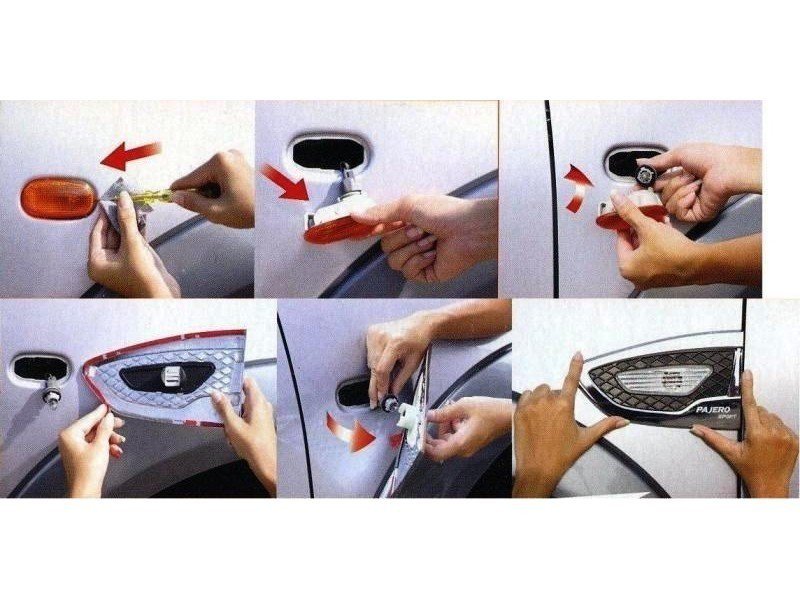 Продам тюнинг на Mitsubishi Pajero Sport. Повторители поворотов в крыло Mitsubishi Pajero Sport. Крепятся на двусторонний скотч 3М. Подходят на модели с 2008 по 2016 года выпуска.3000 руб. Еще есть в наличии накладки на внутренние пороги дверей.2500 руб. Новосибирск. Студенческая.