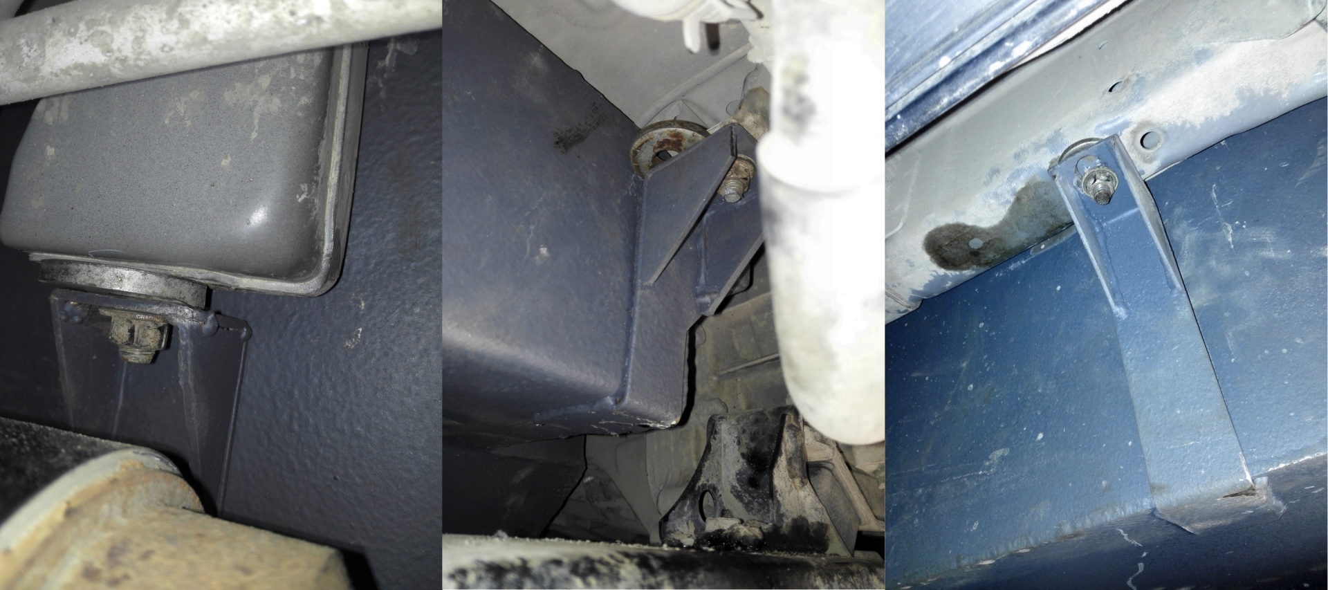 4. См. фото - бак установлен так (объяснение, как понял его я - бак дальше к кузову не прижимается, прижимали - машина на подъемнике поднимается. И там сверху еще не то провода, не то шланг). Норм? Чревато? Переделывать? Бак Крепление у кардана. Было переварено для возможности закрепления. Фото нет.