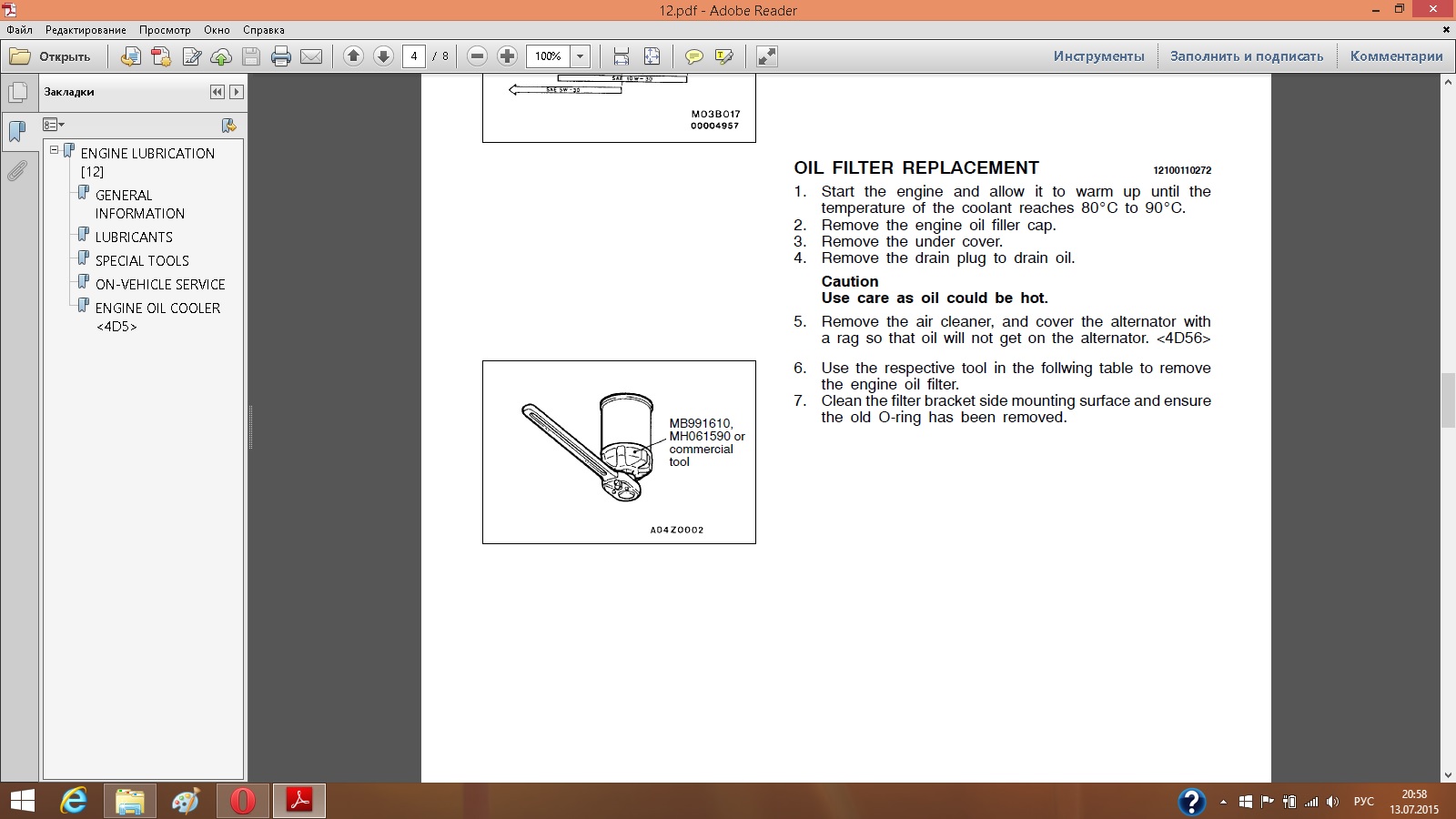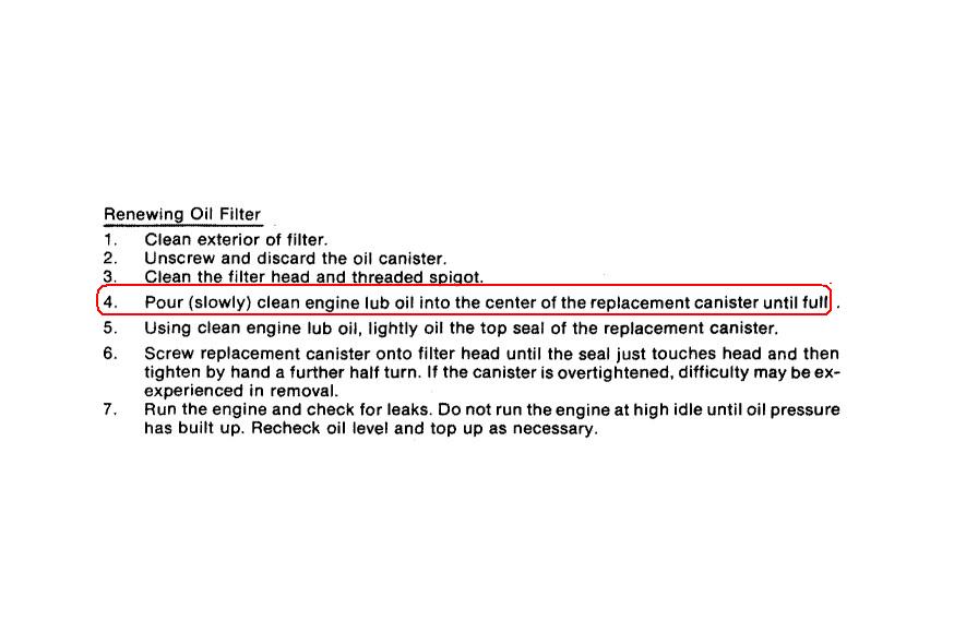 Выше уже упоминалось, что производители фильтров не рекомендуют заливать. Наверное, они опасаются, что среди нас найдутся "умники", которые зальют в новый фильтр грязной отработки и всё это погонит во вкладыши. И выбрали меньшее из зол (пусть лучше крутят насухую)? А вот производители некоторых дизелей так не считают. Возьмём мануал Perkins (не 4М41, но ради объективности), раздел порядок замены масляного фильтра: