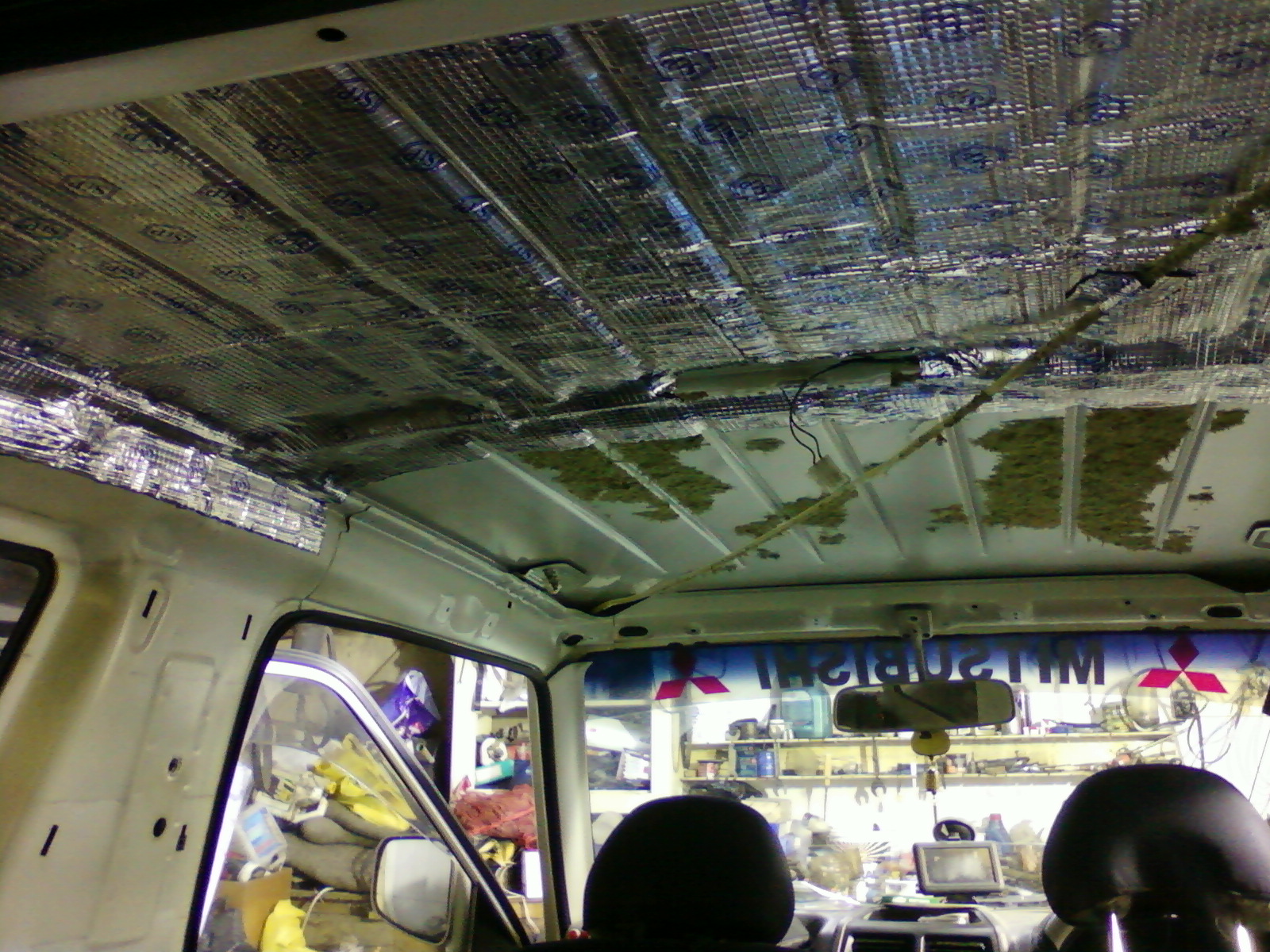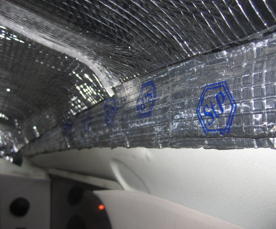 Крыша: Сначало обклеил всё вибропластом(2мм), потом обклеил самоклеющимся утеплителем (6мм), теперь глухо в машине...не слышно как идёт дождь, как раньше - барабанная дробь.