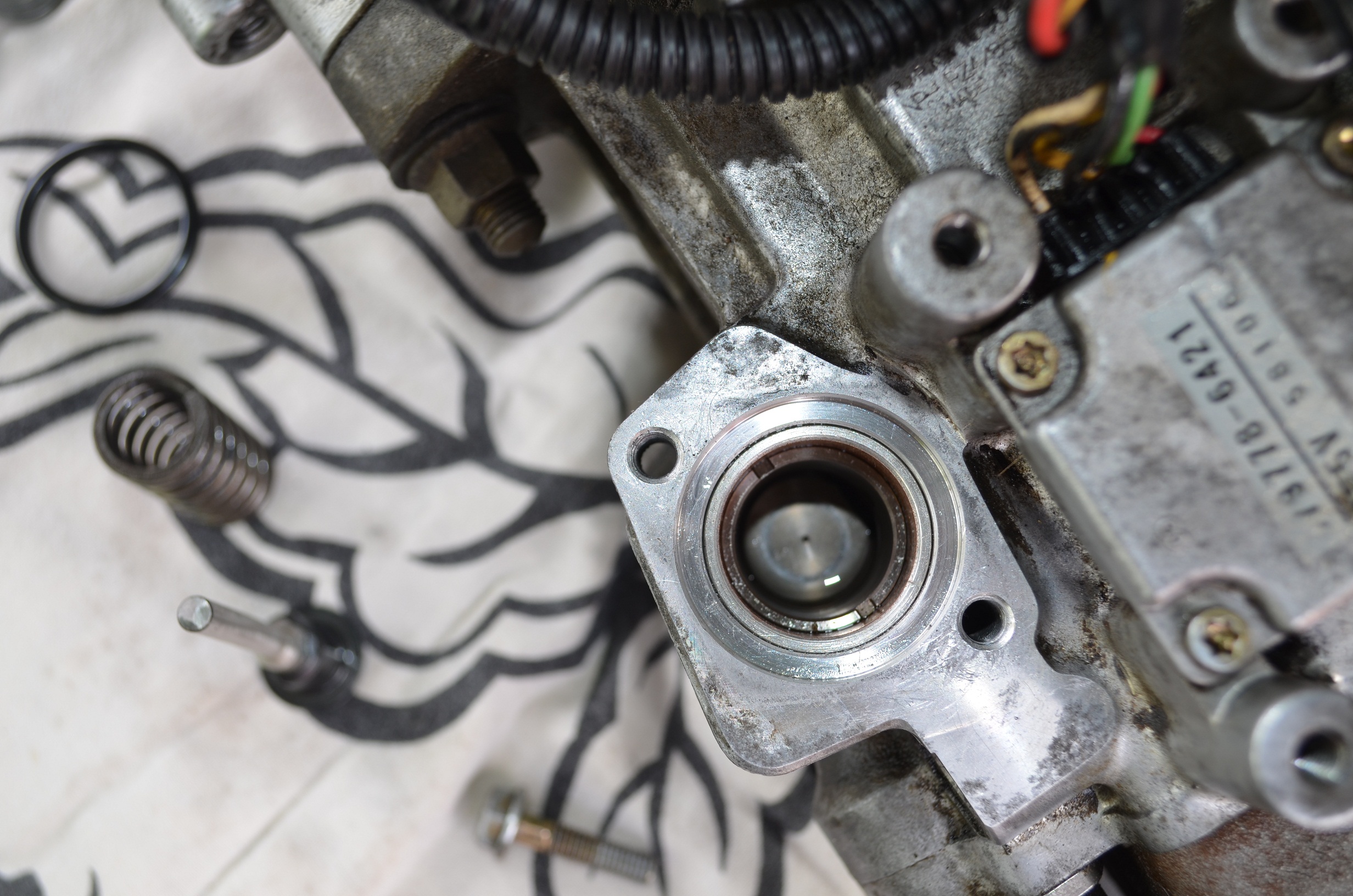 следующим шагом логично снять крышку регулятора и по внутренней поверхности крышки оценить степень "загрязнённости" ТНВД, также заглянуть сбоку в регулятор- насколько внешняя пружинка "обросла" металлической "пудрой"