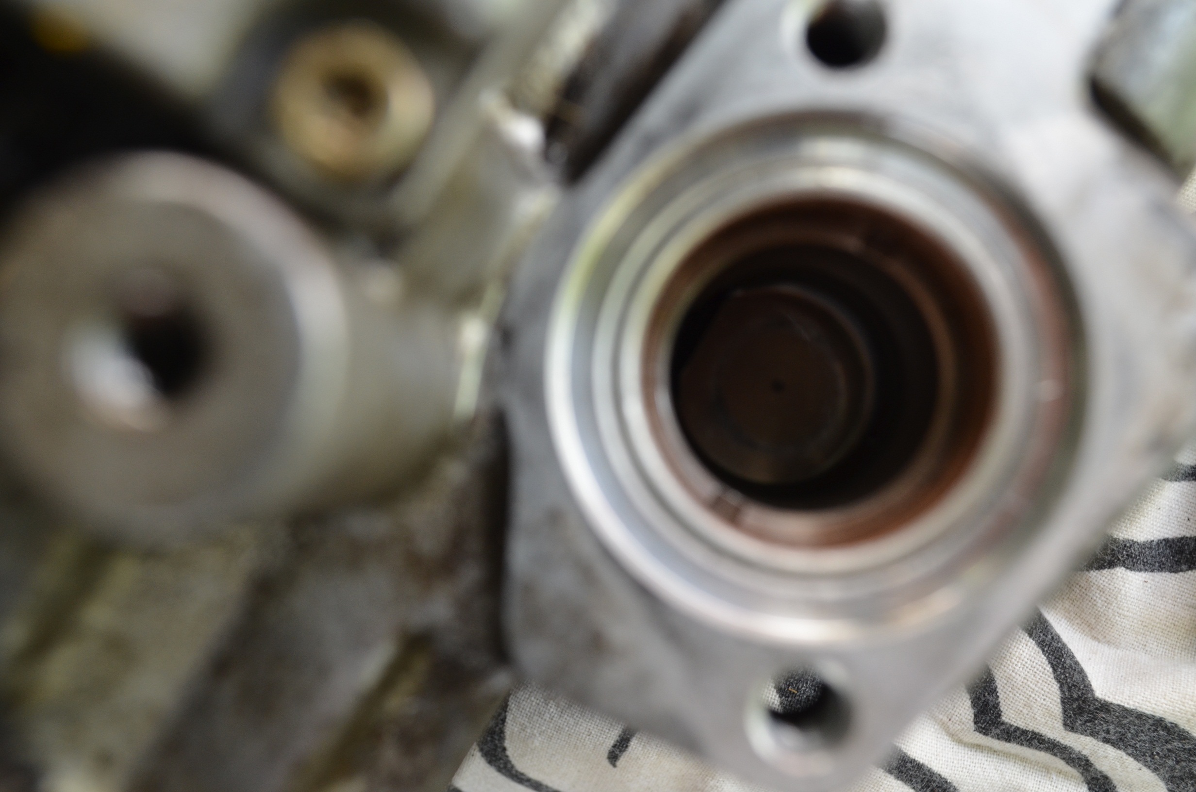 Вынул шток,заглянул внутрь,я так понимаю это поршень,вернее часть поршня,каких либо дефектов я не вижу,но он не выходит,двигается не очень свободно без хруста и скрежета.Что разбирать дальше чтоб посмотреть кольцо с шипом?Снял крышку поршня с обратной стороны,там тоже без дефектов.Поршень ходит от кромки до кромки с обоих сторон как на двух верхних фото,чтобы он вышел еще,как в фильме у Виталия,нужно сильно нажать.