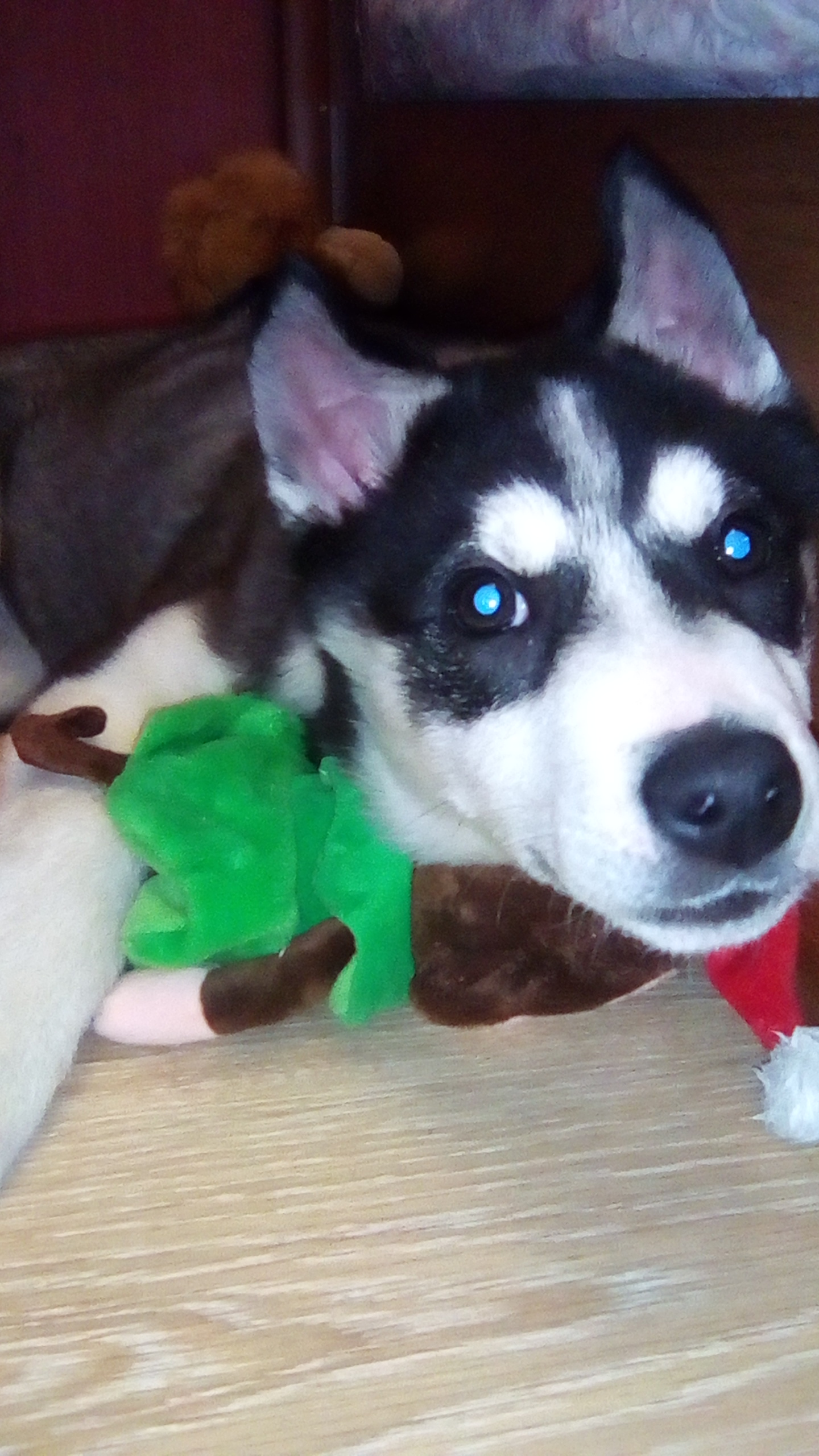 Ну половину времени гуляем,слава богу пес не боится ни холода ни нагрузок, постоянно у двери стоит просится,а выходит ныряет мордой в снег))))) растет на глазах парень, тьфу тьфу тьфу))))