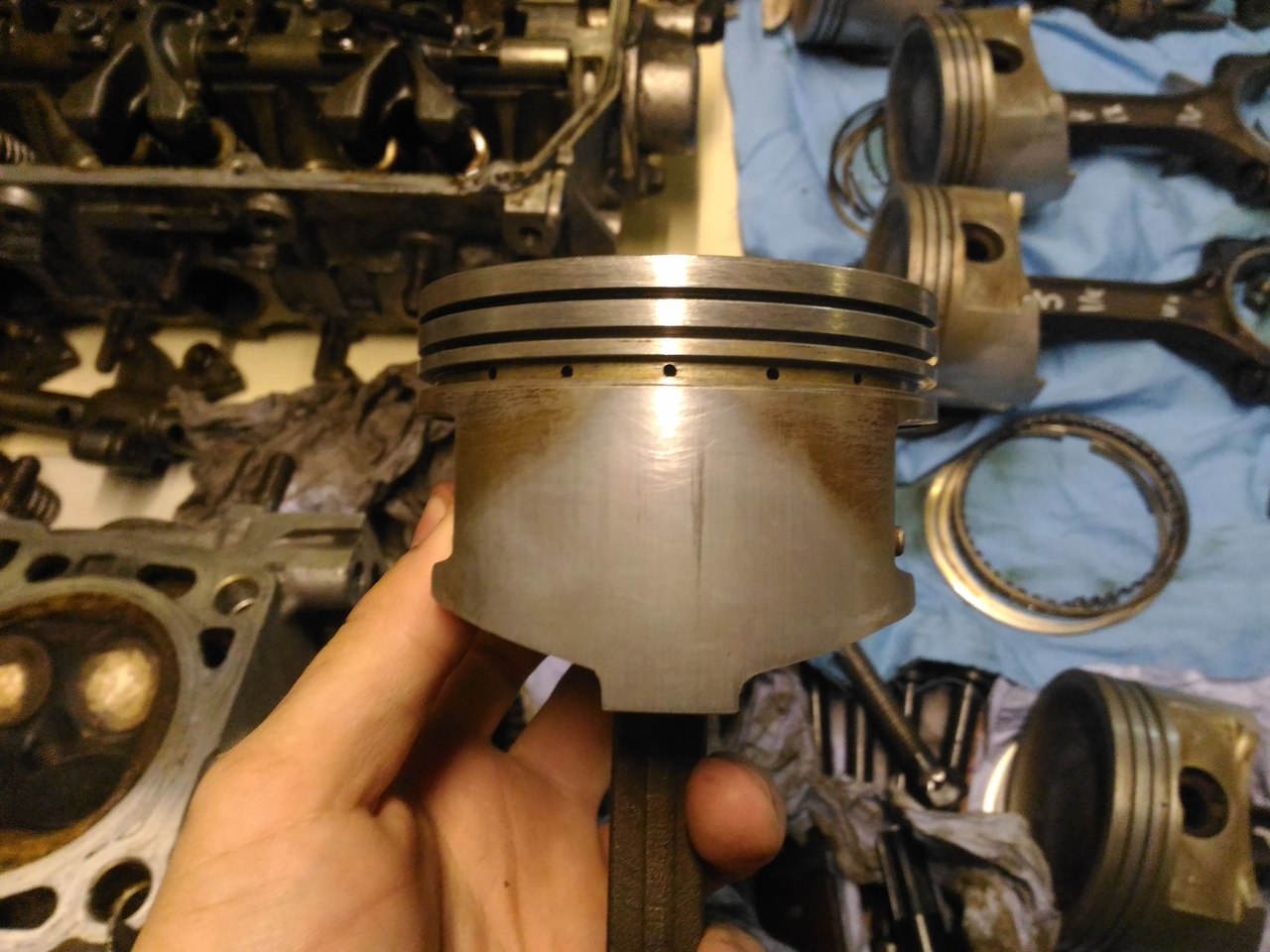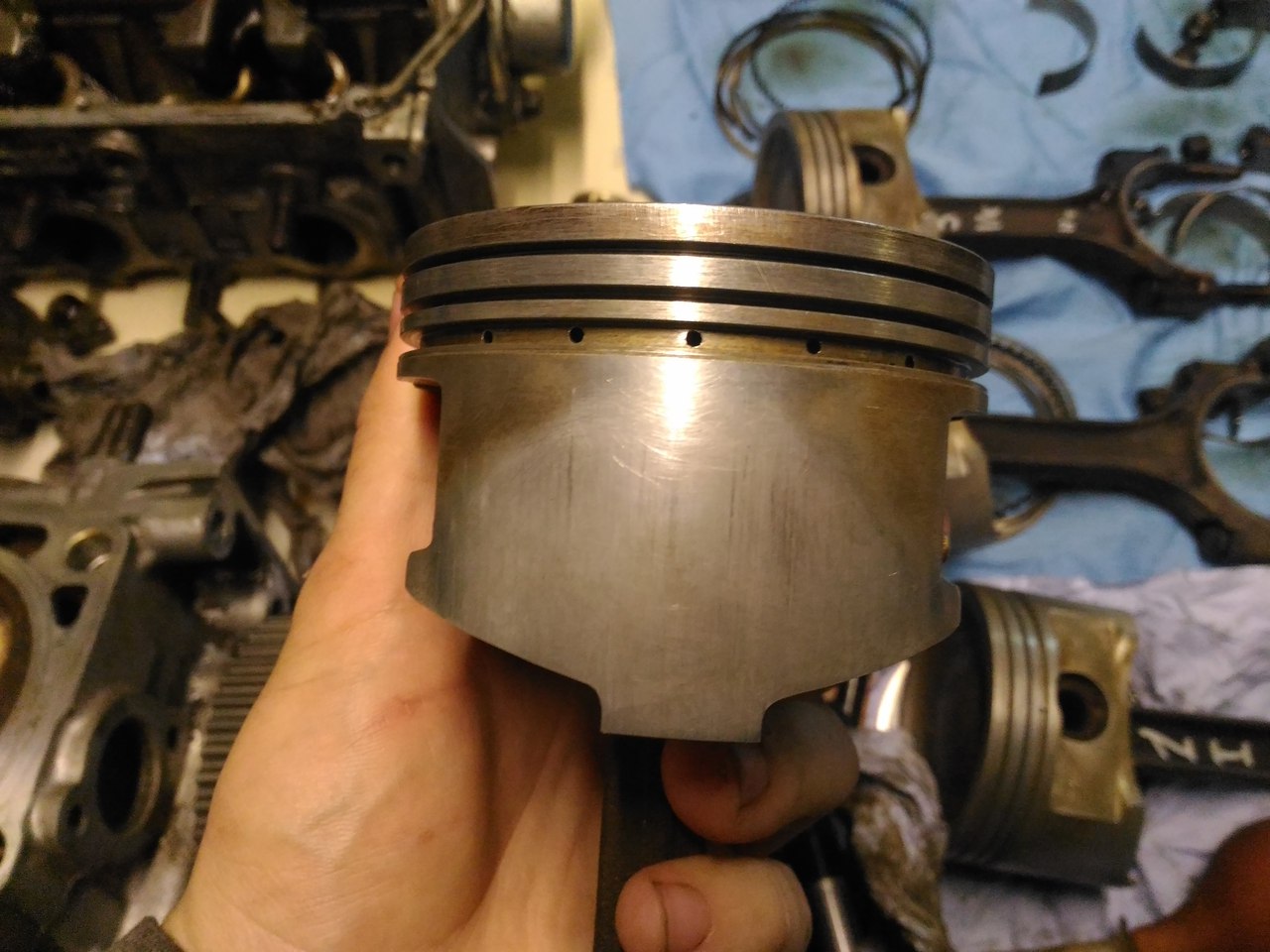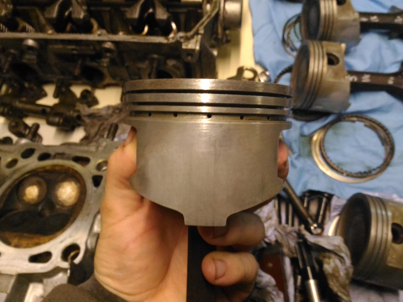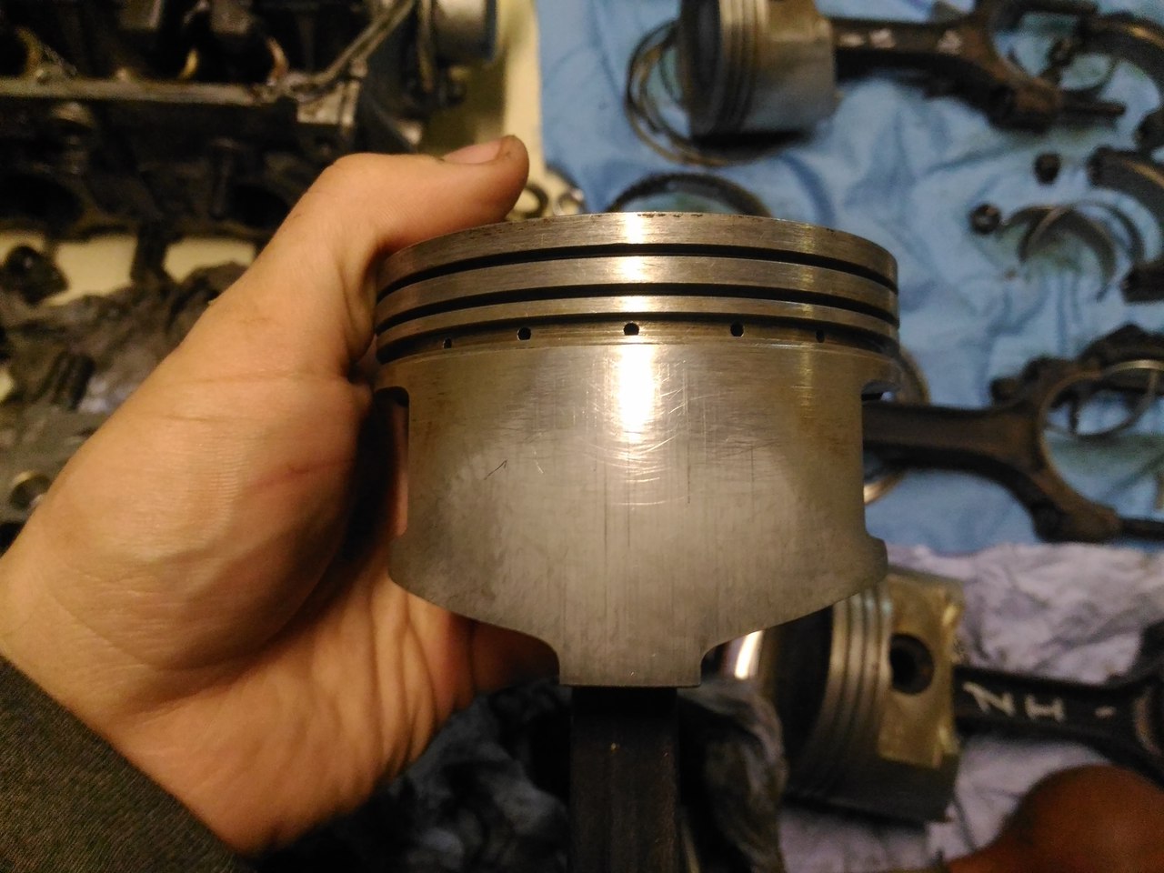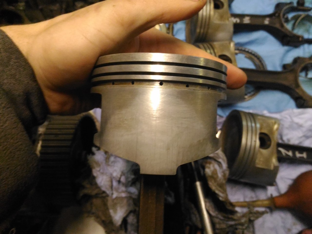 Все отмыл, фото каждого поршня с двух сторон. Состояние вроде приличное. По скольку меняли обкаточные поршня на другой машине, которая с завода прошла 30тыс у нее такие же были поршня.