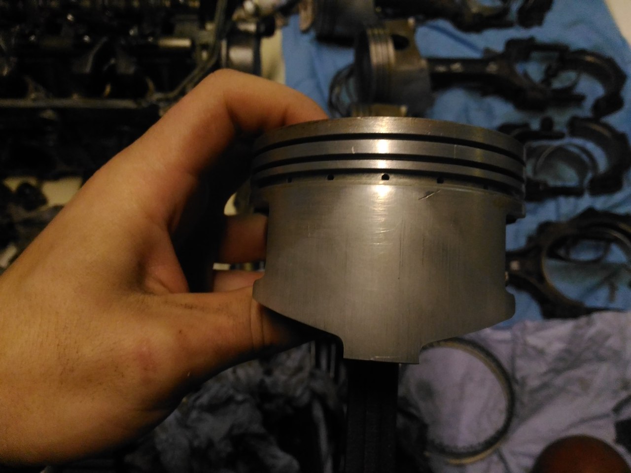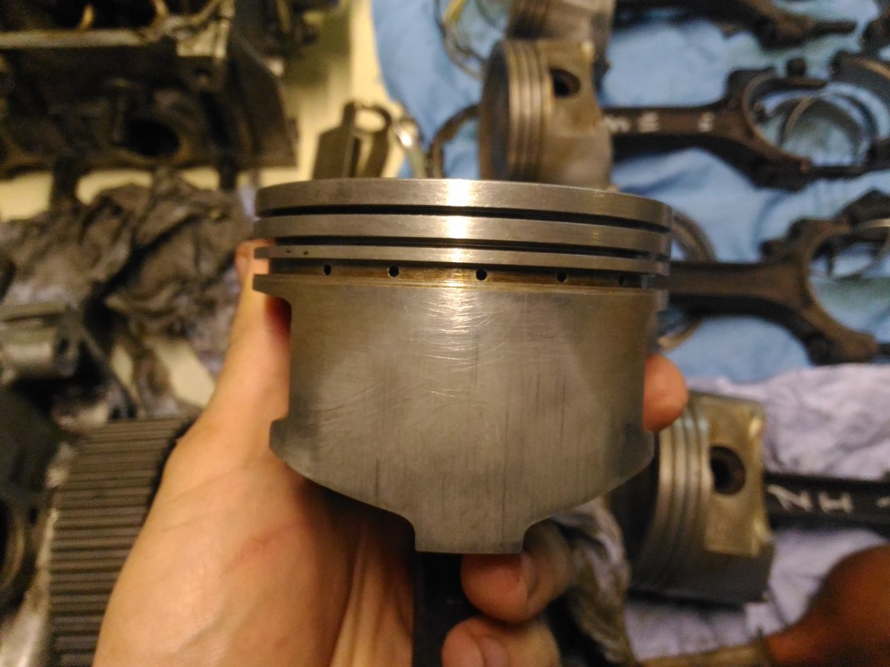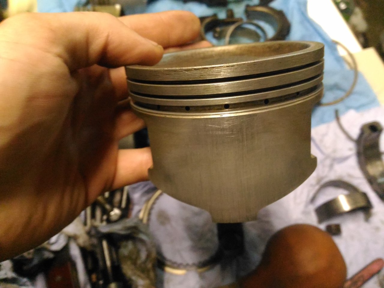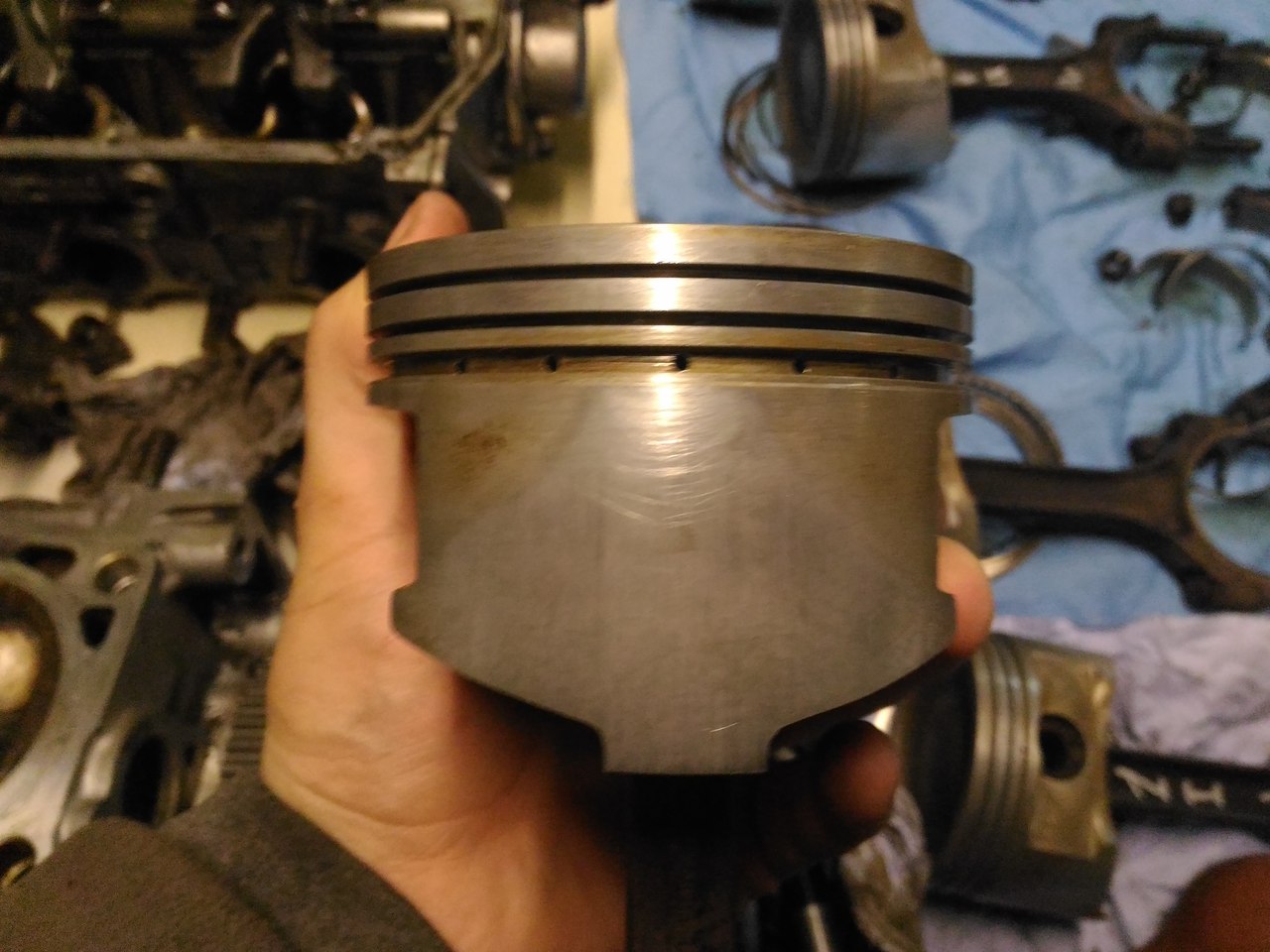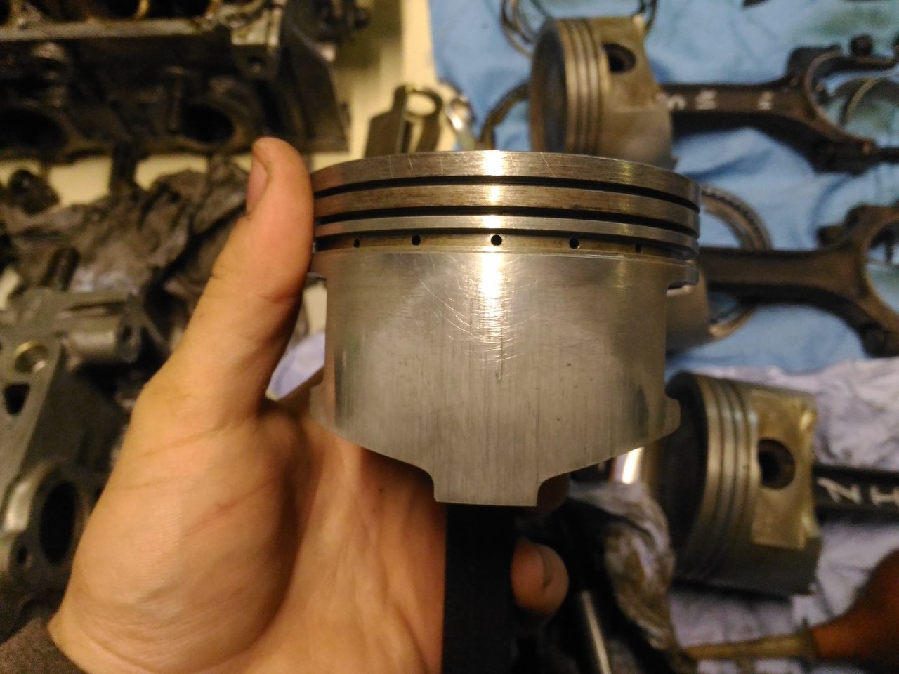 Все отмыл, фото каждого поршня с двух сторон. Состояние вроде приличное. По скольку меняли обкаточные поршня на другой машине, которая с завода прошла 30тыс у нее такие же были поршня.