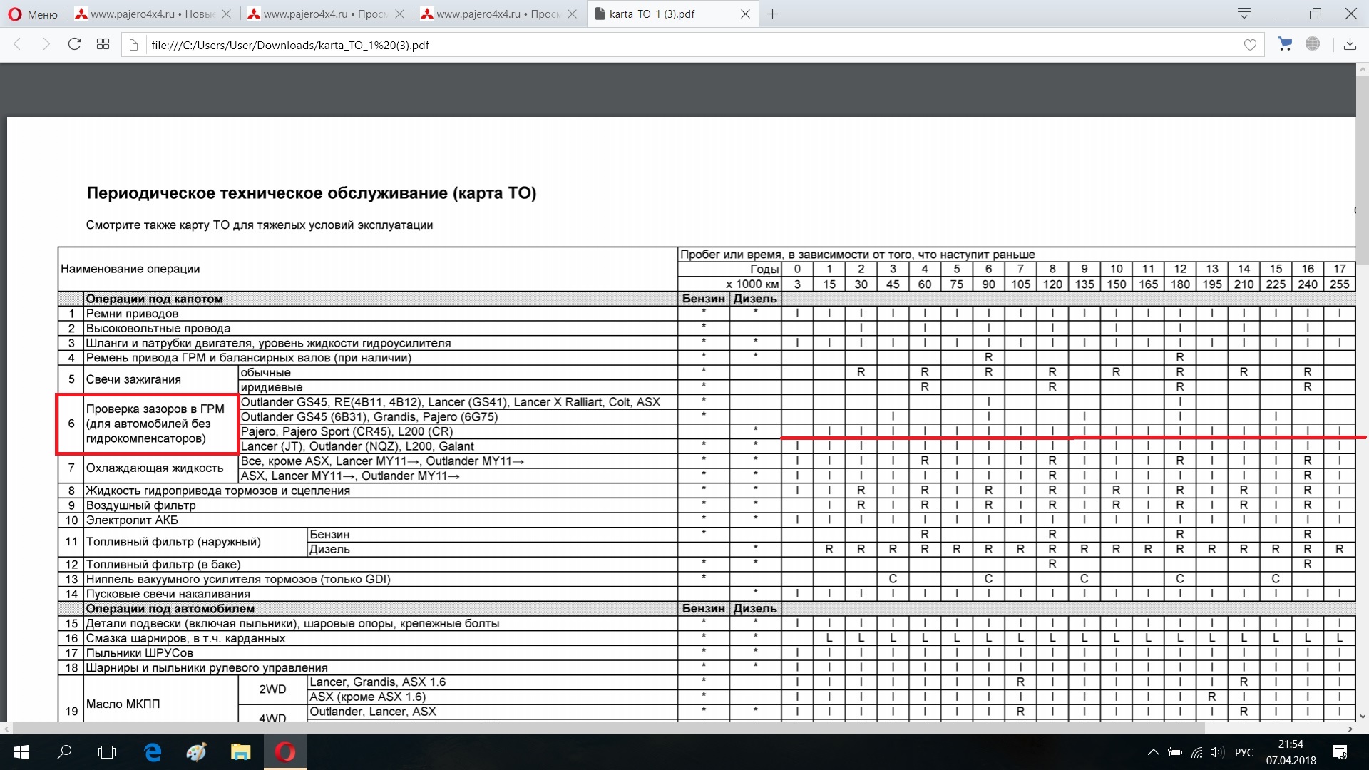 Огонь! Но не убедил. И если внимательно посмотреть, то оказывается, что каждые 15000 напротив зазоров в ГРМ стоит "I", смотрим что же такое "I" и оказывается что это "осмотр/проверка". Если копнуть техкарту на ТО, то там нет в работах каждого ТО снятия клапанной крышки и нет прокладки в материалах. Получается, что осмотр и проверка без вскрытия. Понимай как знаешьroxdrive писал(а):[Я все знаю, что мне присматриваться)) А ещё я скромный...