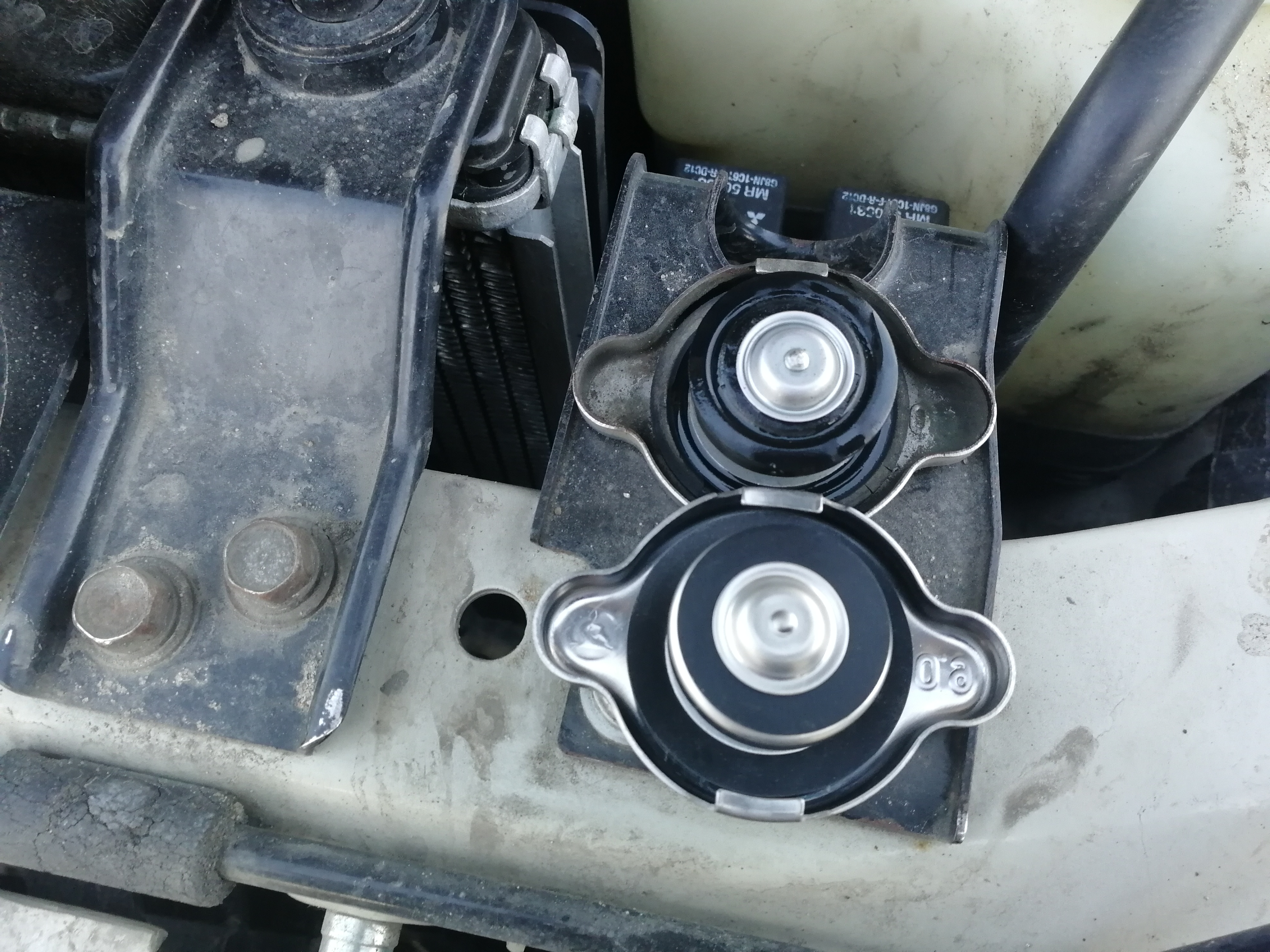 Приехала новая крышечка. Я сравнил ее со старой и немного удивлен. Это её так сплющило, что ли? Открыл радиатор - он полный. Субъективно в новой пробке пружина сильнее.