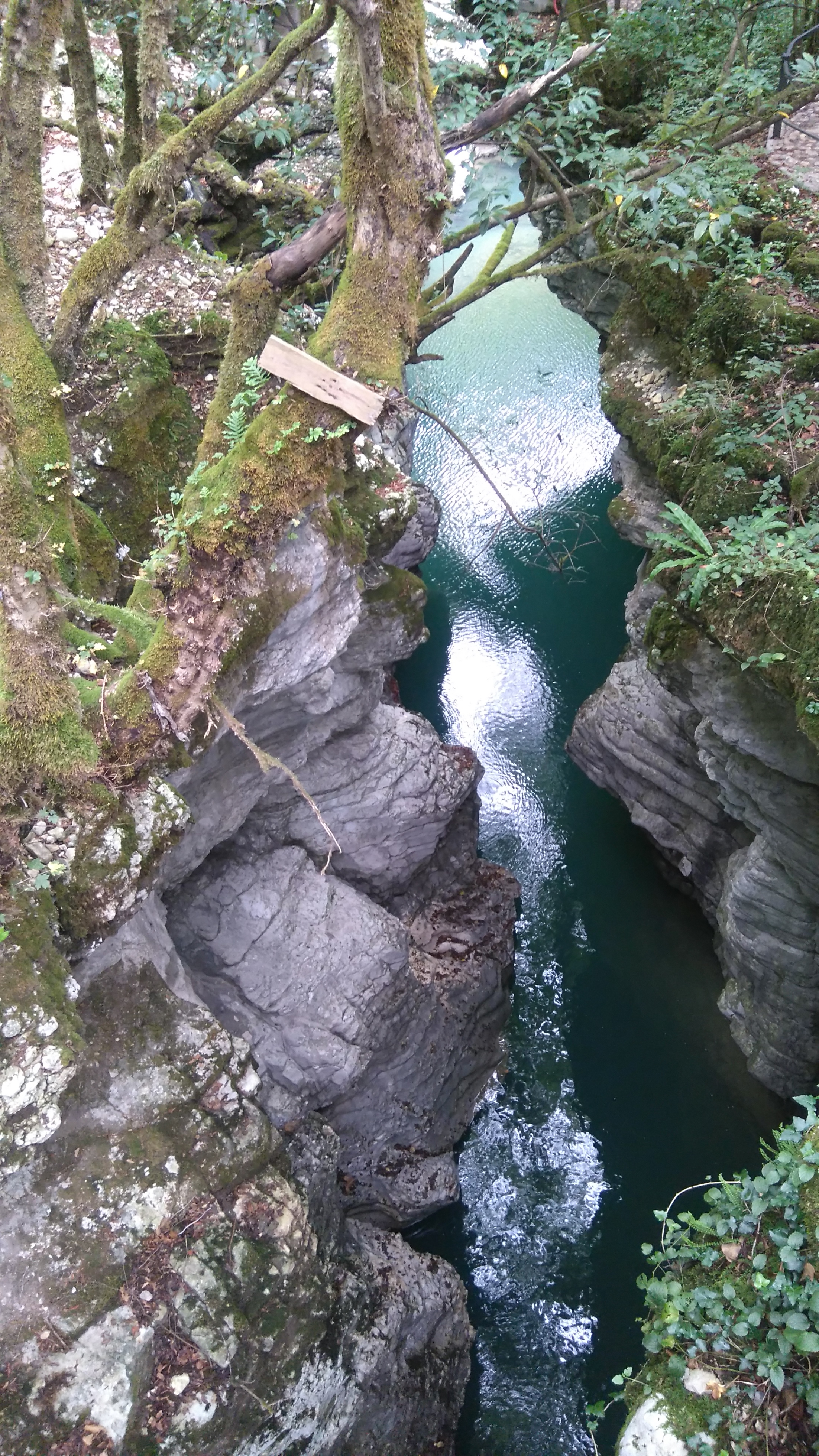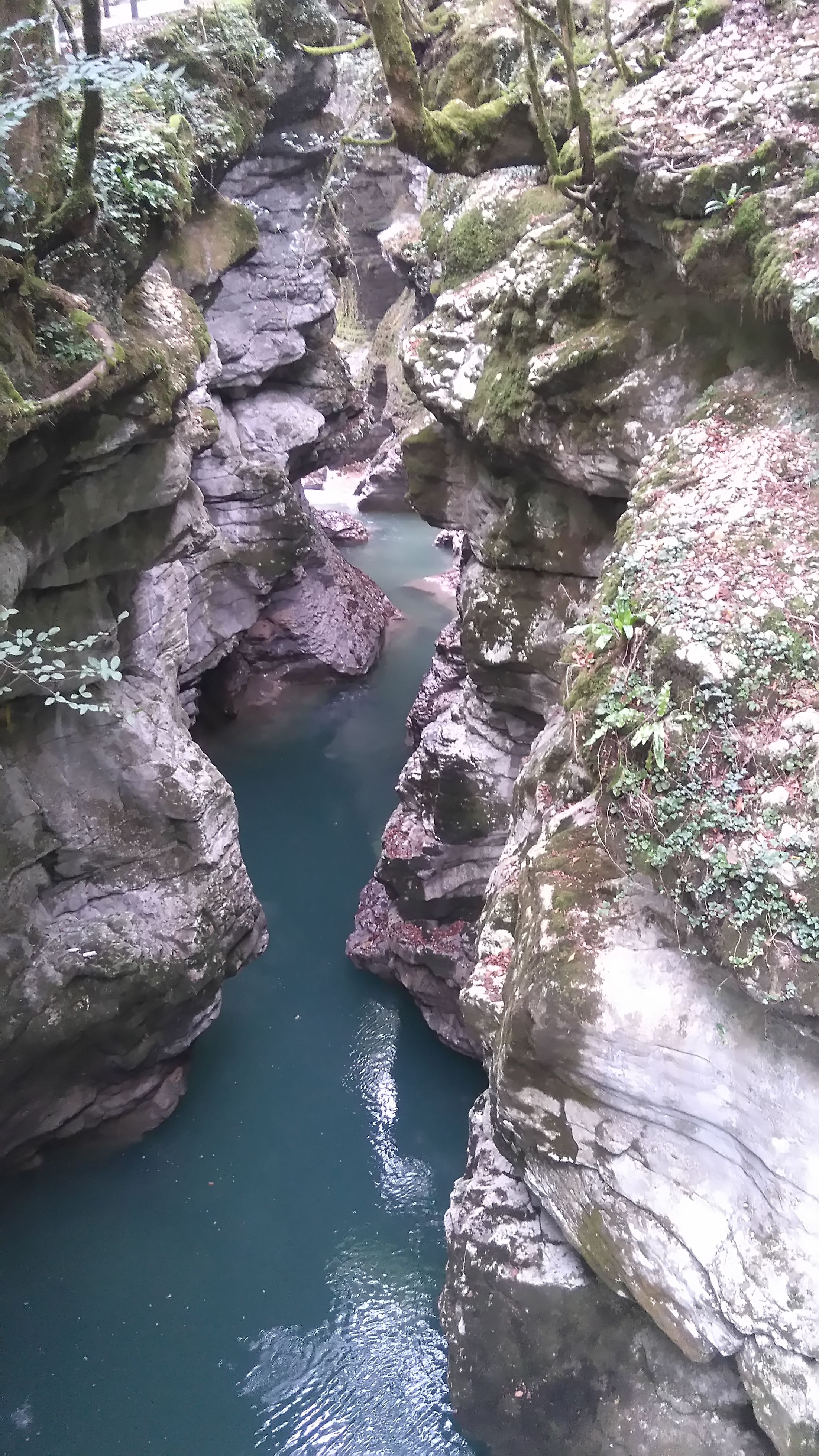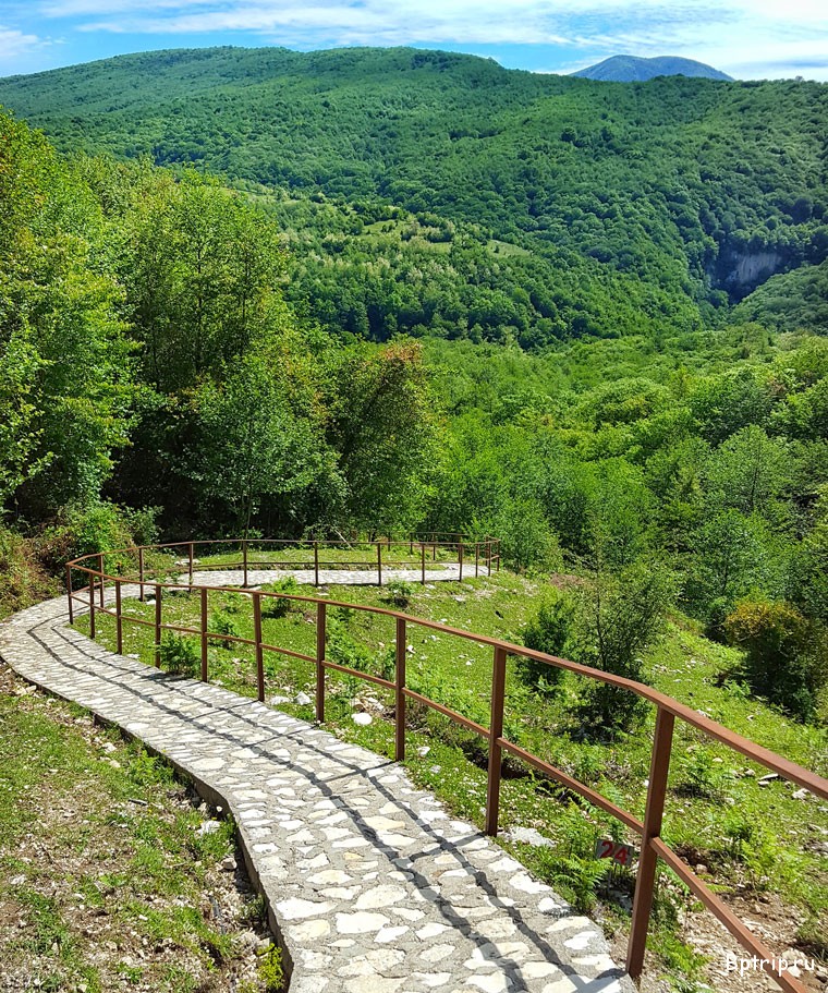 Каньон промыт в горах промыт одноименной рекой. Что бы до него добраться надо остановиться на стоянке у туристического центра. А затем два варианта : или пешком или на внедорожнике с местными жителями. Но мне нравится сочетанный вариант. Туда прогуляться пешком , около 2,5 км лесопарком созданным князьями Дадиани, у которых тут была одна из многочисленных резиденций, а обратно подняться на внедорожнике, что само тоже захватывающее действо. Я понимаю, что пишу на форуме людей, которых отсутствием дорог не испугаешь, а только привлечешь, но тамошняя дорожка состоит из россыпи острейших камней и валунов, и аборигены за сезон меняют не один комплект резины. А вам еще возвращаться на своем Паджеро домой или еще колесить по Грузии. Поэтому я предпочитаю отдать 50-60 лар водиле какой-нибудь Делики и , пусть эти проблемы с автомобилем станут его.