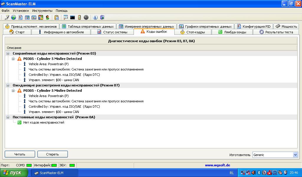 Недавно прикупил синезубый ELM327 адаптер, да как то руки не доходили. А сегодня по дороге домой загорелся SES, дай думаю погляжу че там и как. Подключил к ScanMasterELM на ноуте, куча всего разного, интересного.