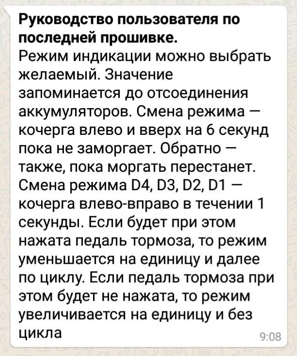 Настройки режима индикации сохраняются при выключении зажигания, но стираются при отсоединении аккумуляторов.