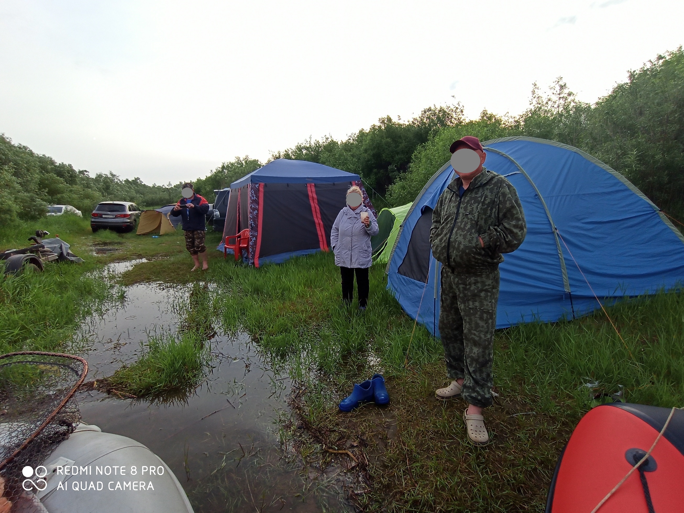 Это 12 числа, когда уже перенесли лагерь. А утром 13-го... Проснулись все мокрые и в воде, бо как вода ещё поднялась и затопила всё... В шатре было выше щиколотки. Пришлось сворачиваться и валить. Гараж превратился в сушилку... Есть видео, но там адреса, пароли, явки...
