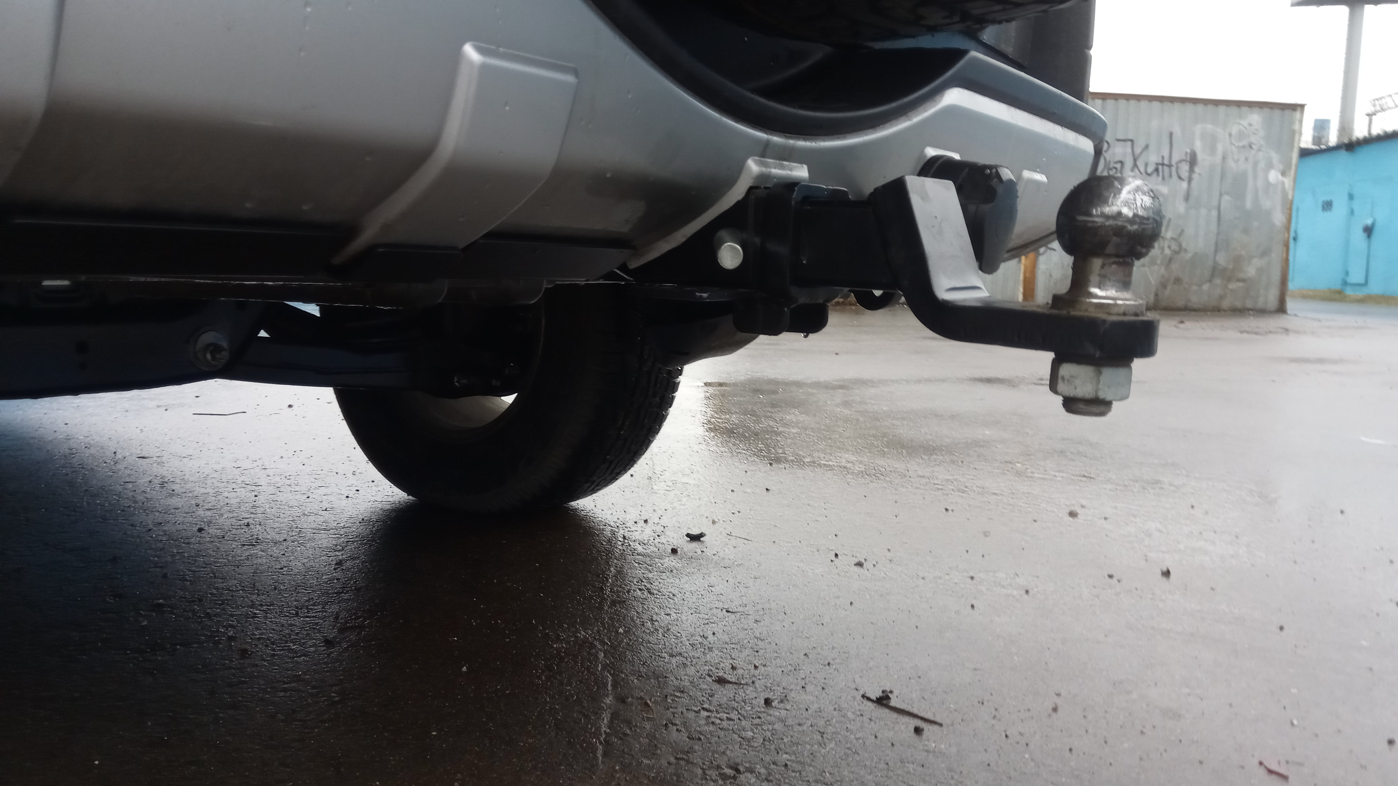 Установил фаркоп с защитой заднего бампера. Купил на Авито б/у. Александр (МШУ) преварил страховочные уши и площадку под хайджек