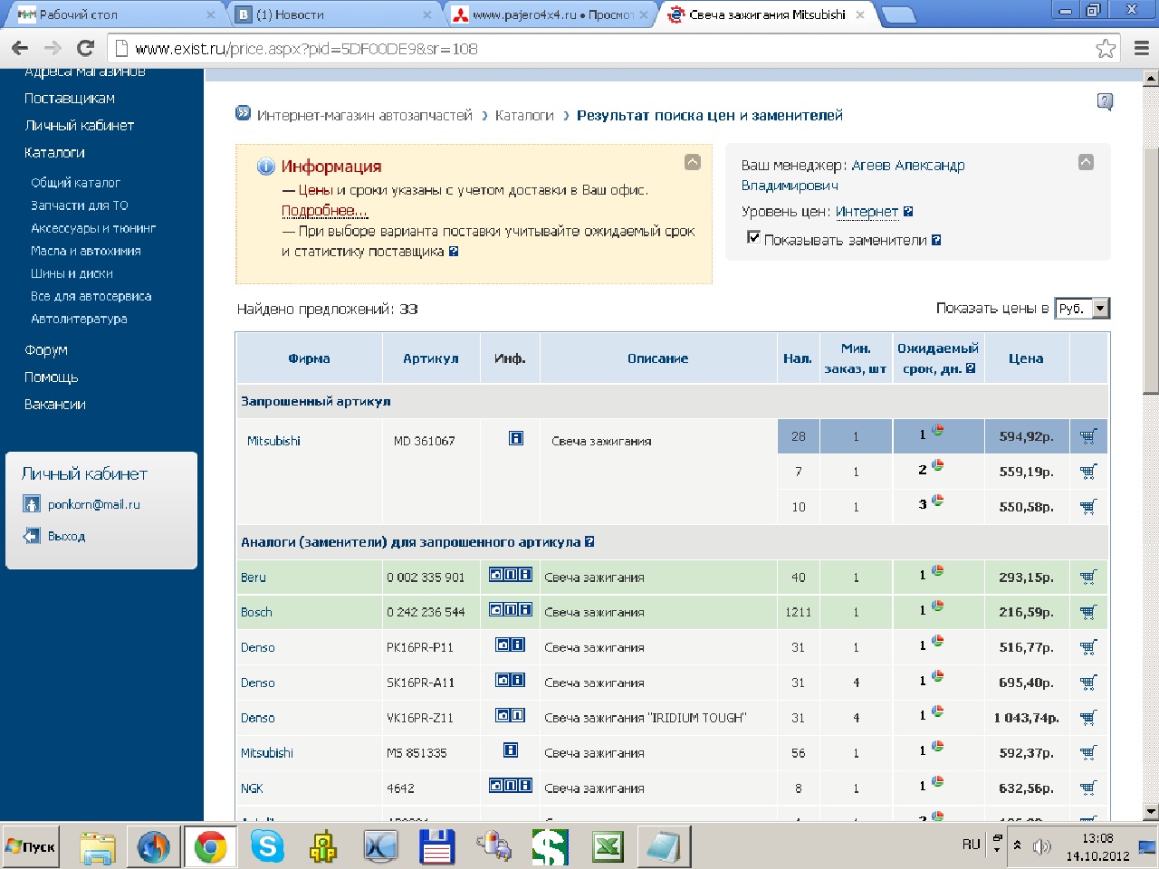 А какие,если не секрет?Studebeker писал(а):Denso 3356 - это теже SK16PR-A11 , но еще дешевле 486 руб.и 1 день.