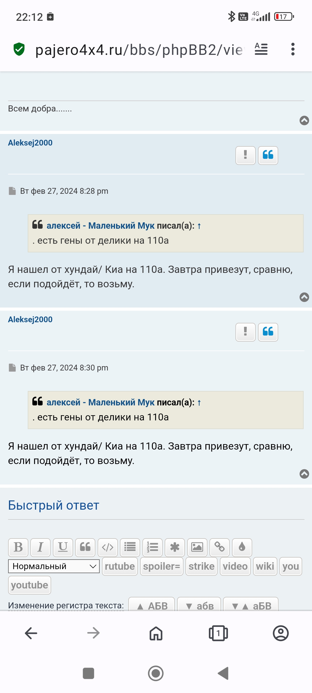 Вообще нет? Около слова "писал(а):" - нет ничего?Aleksej2000 писал(а): ↑24 фев 2024, 14:08 Нет в цитате стрелки перенаправления с цитаты на само оригинальное сообщение.