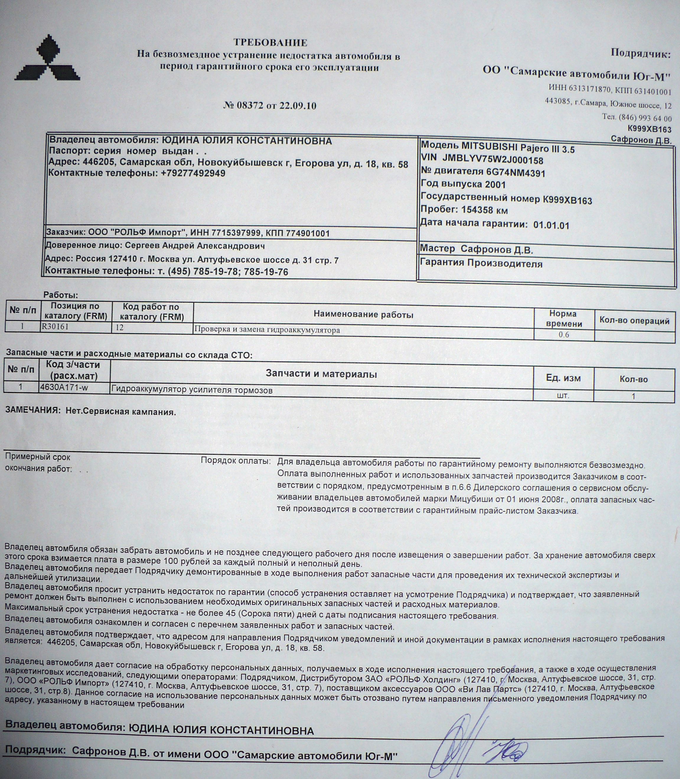 СТОП!!!Y.vovan писал(а):У меня так же началось "бжинь бжинь бжинь" под панелью,гидроаккумулятор тормозов накрылся.Поехал к офециалам,а они мне говорят,что это гарантийный случай,типа косяк Mitsubishi и поменяли все бесплатно,у меня аж глаза на лоб полезли.Машине все таки 9лет.