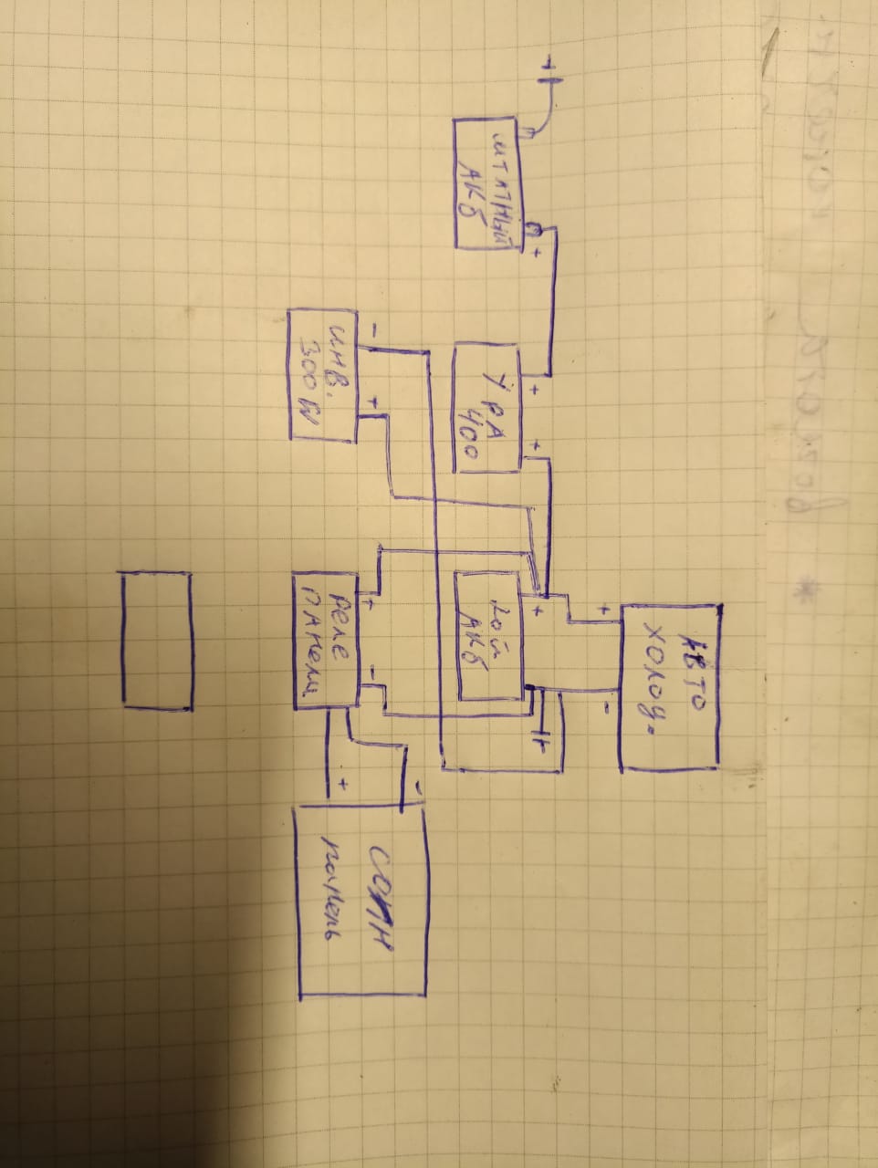 Схемку приложил , взял ее на драйве , без излишеств. Инвентор на 300W стоит просто так на всякий, холодильник авто на 12в. схема рабочая, мне нравится. Панель на 150w брал где то на шоссе энтузиастов , магазин, там же простой контоллер на 20А , чтоб можно 2 панели подключить , вдруг. фоток что то не делал.