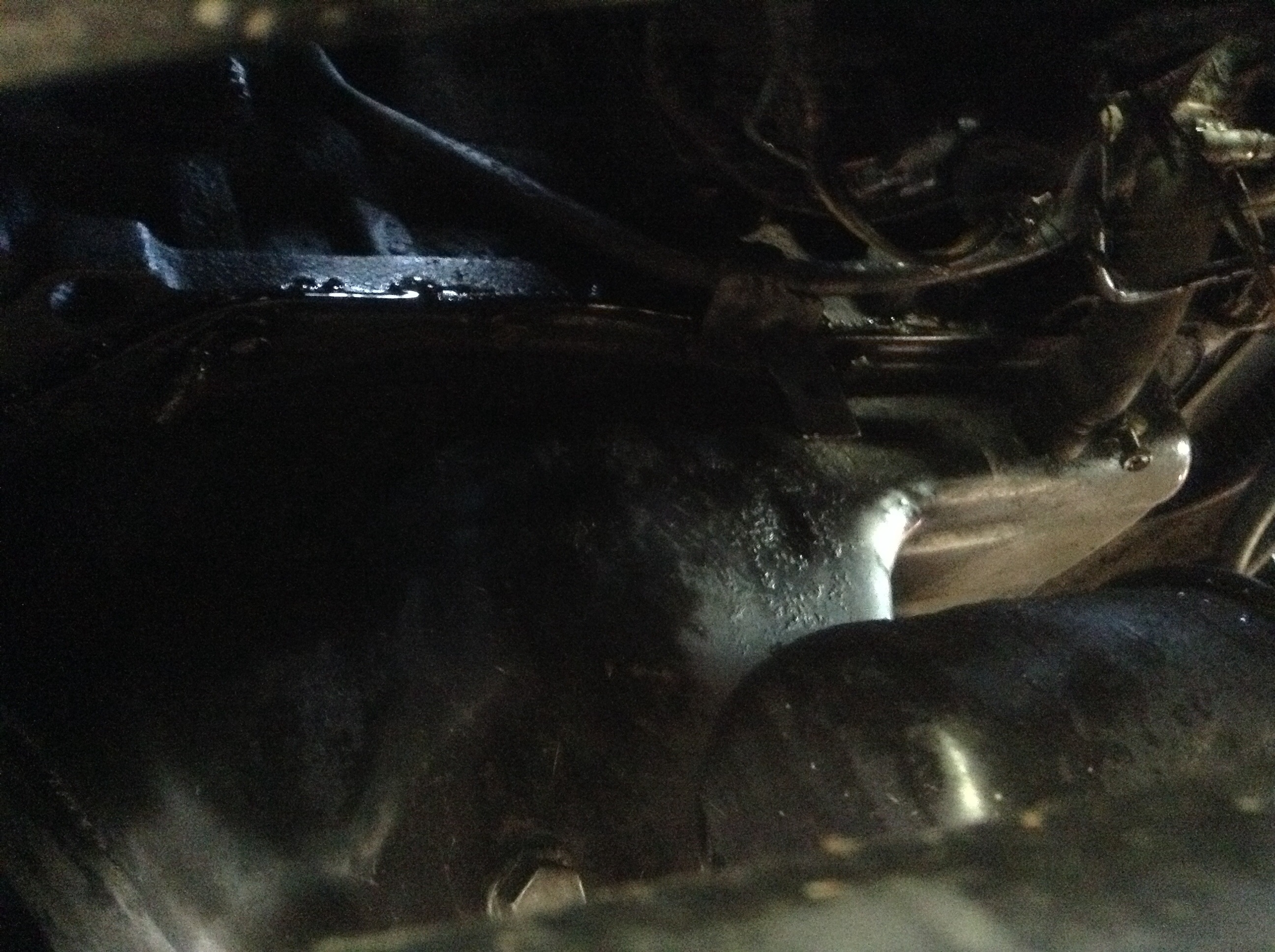 результат не заставил себя ждать, похоже бежит с правой стороны из под крышки поддона, там за минуту набирается несколько капель и текут в конец двигателя по шву между блоком и поддоном, вот на фото видно плохо но видно