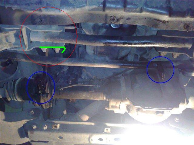 к этим болтам? - обведено красным кругомsilverus писал(а):Крепил к поперечине рамы (не к мосту), там два штатных болта нужной длины, просто