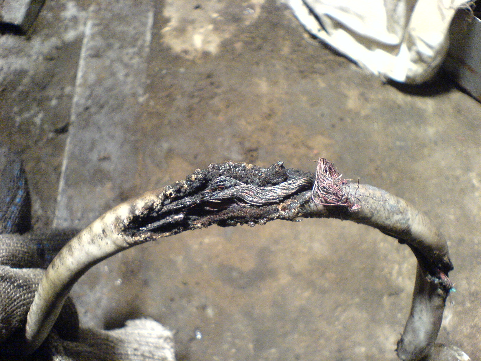 Подниму тему т.к. причина серьёзная. В самом начале темы писал что контакты от статора гены до моста протянул проводами сечением 2,5 кв. Маловато будет. На прошлой неделе заводил авто в мороз с одним аккумулятором. Делал несколько попыток и на последнем издыхании аккумулятора двигатель завелся. Минут пять поработал двигатель, уже хотел ехать, но почуял запашок, да и лампа зарядки загорелась. Заглушил, гляжу предохранитель гены дохлый, от проводки дымок. Вскрытие показало вот такую СТРАШНУЮ картину. Ток зарядки посаженого аккумулятора вырос весьма сильно и провода не выдержали.