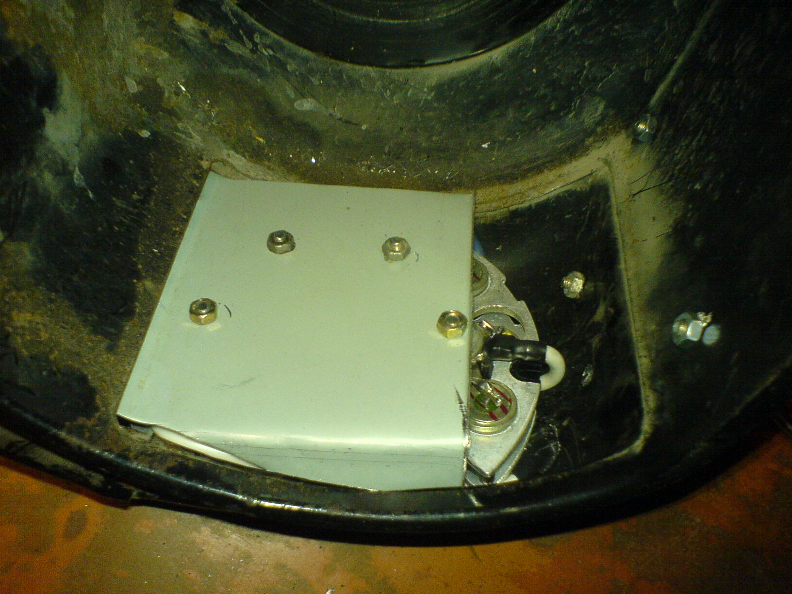 Нижняя планка ложится на 4 болта с гайками, болты на корпусе, корпус болтом к массе. Но я решил перестраховаться и кинул отдельный провод, мало ли чего там разболтается. Да и удобно при каких либо измерениях со снятой коробкой.