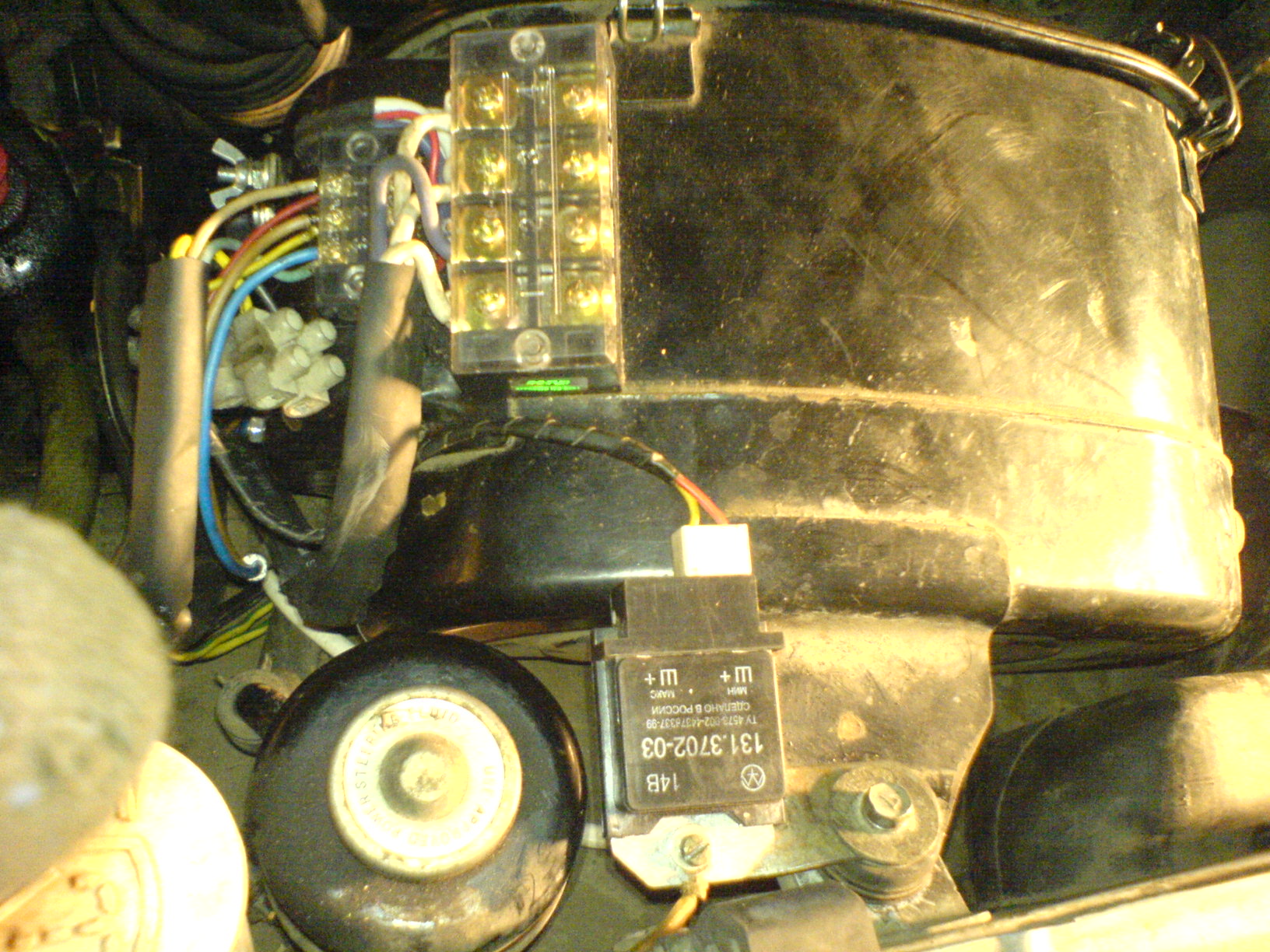 Да и еще я где то на форуме встречал что плюсовой провод, который идет на РР, запитан через силовое реле, после поворота ключа на старт. Решил сделать также и еще подцепить кулер к разъему, который включает силовое реле.