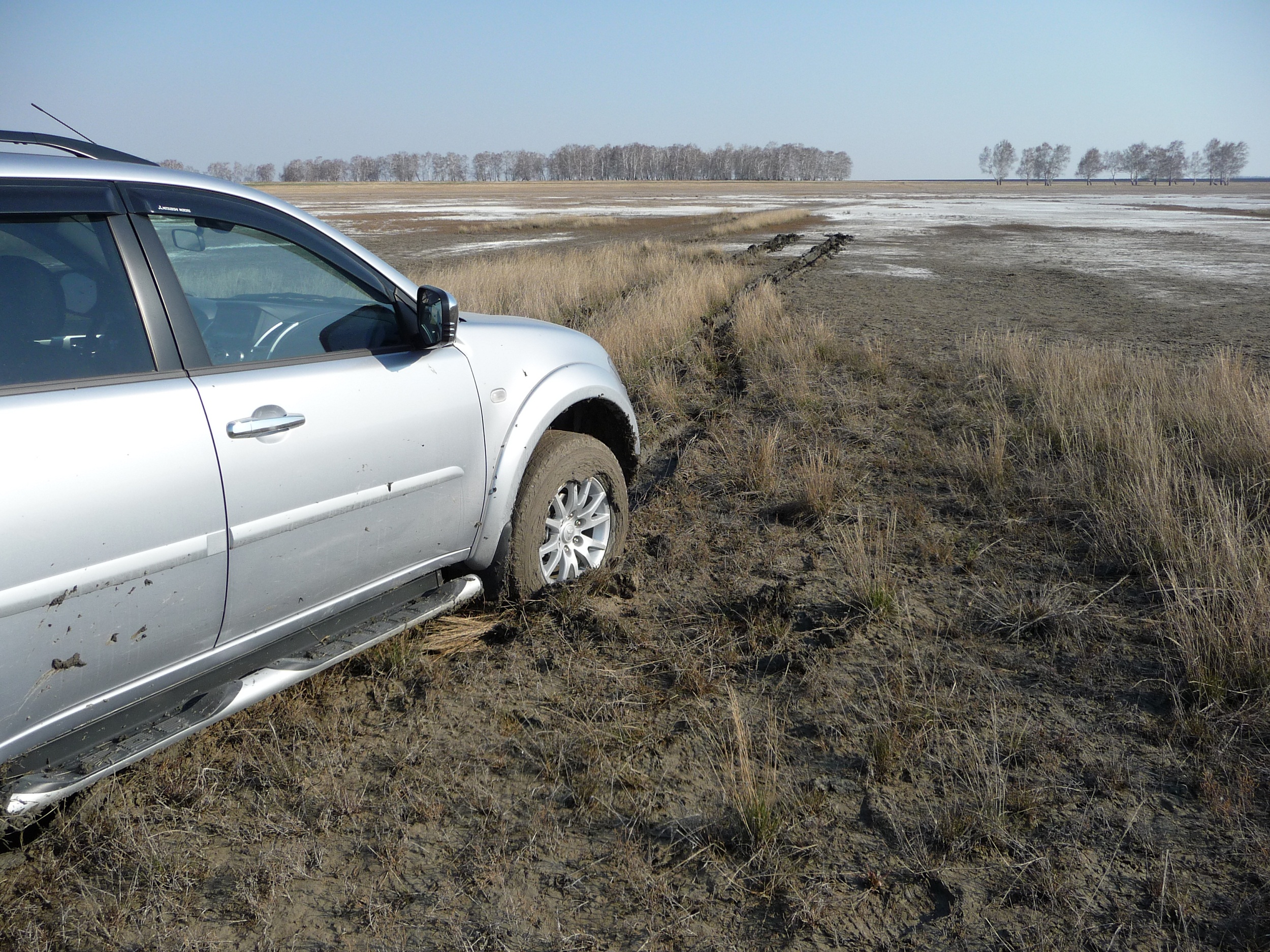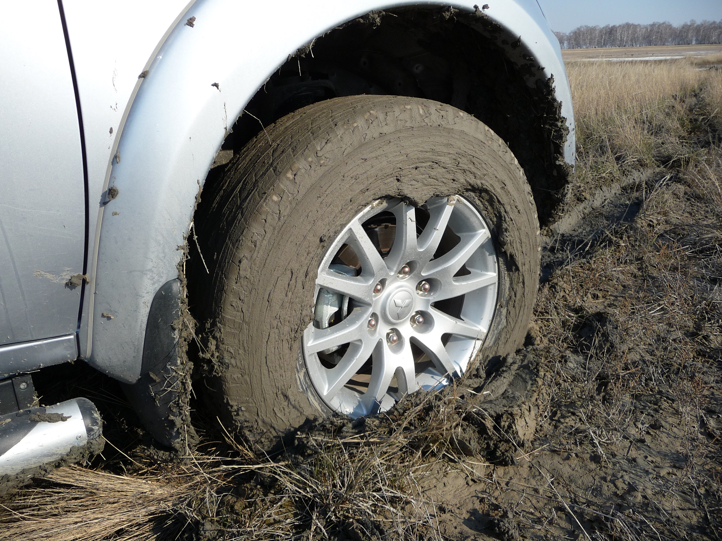 Изначально искал Mickey Thompson Baja STZ, но не судьба, по всей России нужного размера не оказалось, а привезти обещали только через полтора месяца. Пришлось выбирать из того что есть. Перечитав кучу отзывов, форумов и тестов чуть не сломал голову и поехал щупать резину в живую, чтоб позубастее и не сильно дубовая. Понятно, что выбирал из АТишных ведь процентов 70-80 жизнь проходит на асфальте. Остановился на Toyo Open Country AT. Переобувался прямо у ОД, когда забирал автомобиль. Резина отбалансировалась вполне прилично 20-60гр на колесо. Первые впечатления по асфальту - думал, будет хуже – а так неплохо катится, почти не слышно, не большой гул появляется после 80 км/ч, но он совсем не критичен. По рельсам может чуть жестковато, но надо смотреть давление в колесах (зато я представляю как весело на BF! когда в магазине ткнул его ногтем, подумал что пластмасса недаром что по 100 тысяч ходят). По песку тоже хорошо гребет. А вот по глине… Вобщем поехал я на весеннюю охоту, кругом полная сушь, на солончаке, это такая глина с солью, когда высыхает, становится белесой , включил на всякий случай полный привод, и пока крутил головой обозревая окрестности, не заметил, как оказался в грязи. Здесь уже не до дергания рычагов, полный вперед, останавливаться нельзя, но атипробуксовочная система, задушила двигатель, сел. Повключав все блокировки попытался двигаться вперед, но начал зарываться, пришлось включать задний ход. И все-таки метров через пятнадцать сел окончательно. Поработал лопатой, нарвал сухой травы, подложил под колеса и почти без труда вылез на сухое. Даже браслетами не пришлось воспользоваться. Вывод… Резина не плохая, но и не айс, по опыту - на другой резине (из тех, которая была) и другой машине, я бы провел там не один час. Впрочем, большого чуда от нее и не ждал, понимал что покупаю, либо грязь либо комфорт на асфальте и не много грязи. А для говнолина есть браслеты и лебедка.