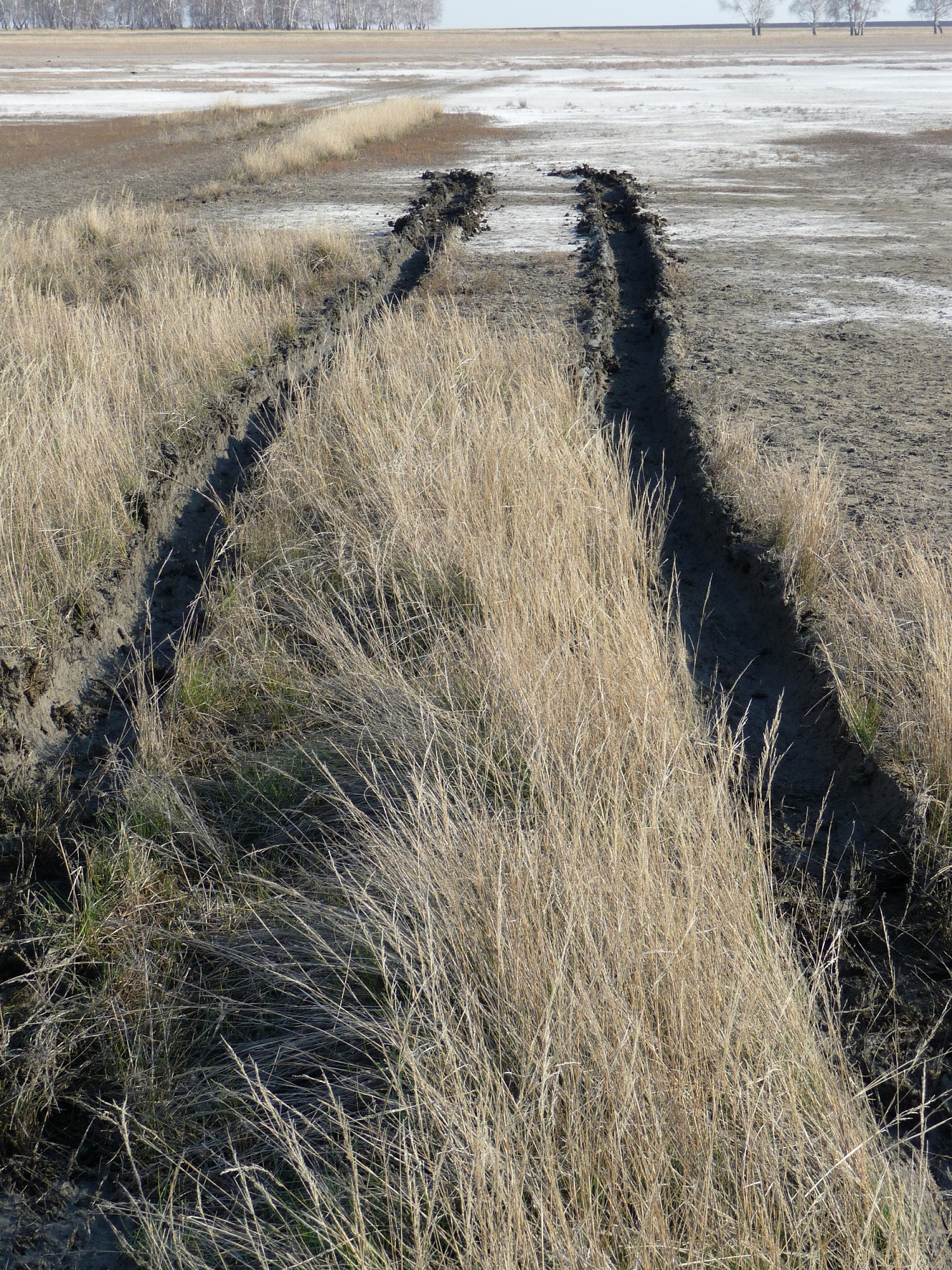 Снег мокрый, по пороги, песок под ним также оттаял.
