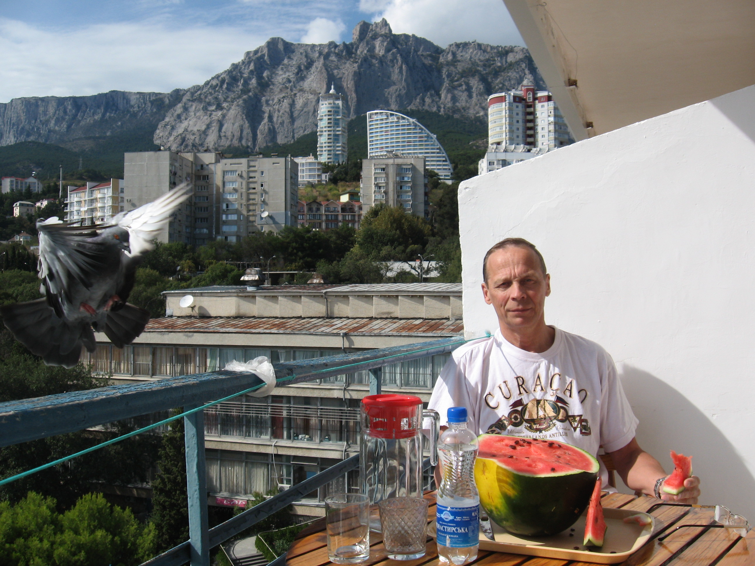 Сижу под горой Ай-Петри в пансионате Мисхор. На 4-х разовом питании. Ну съездили в Воронцовский дворец, в Никитский ботанический, ну на гору въехали по Бахчёвосарайскому шоссе. Хотел до каньёна сгонять, смотрю на ужин опаздываем, жабу не смогли придушить (деньги то уплачены), так и вернулись. Нет скукота, не для меня такой отдых, но необходимость заставляет жить на таком режиме