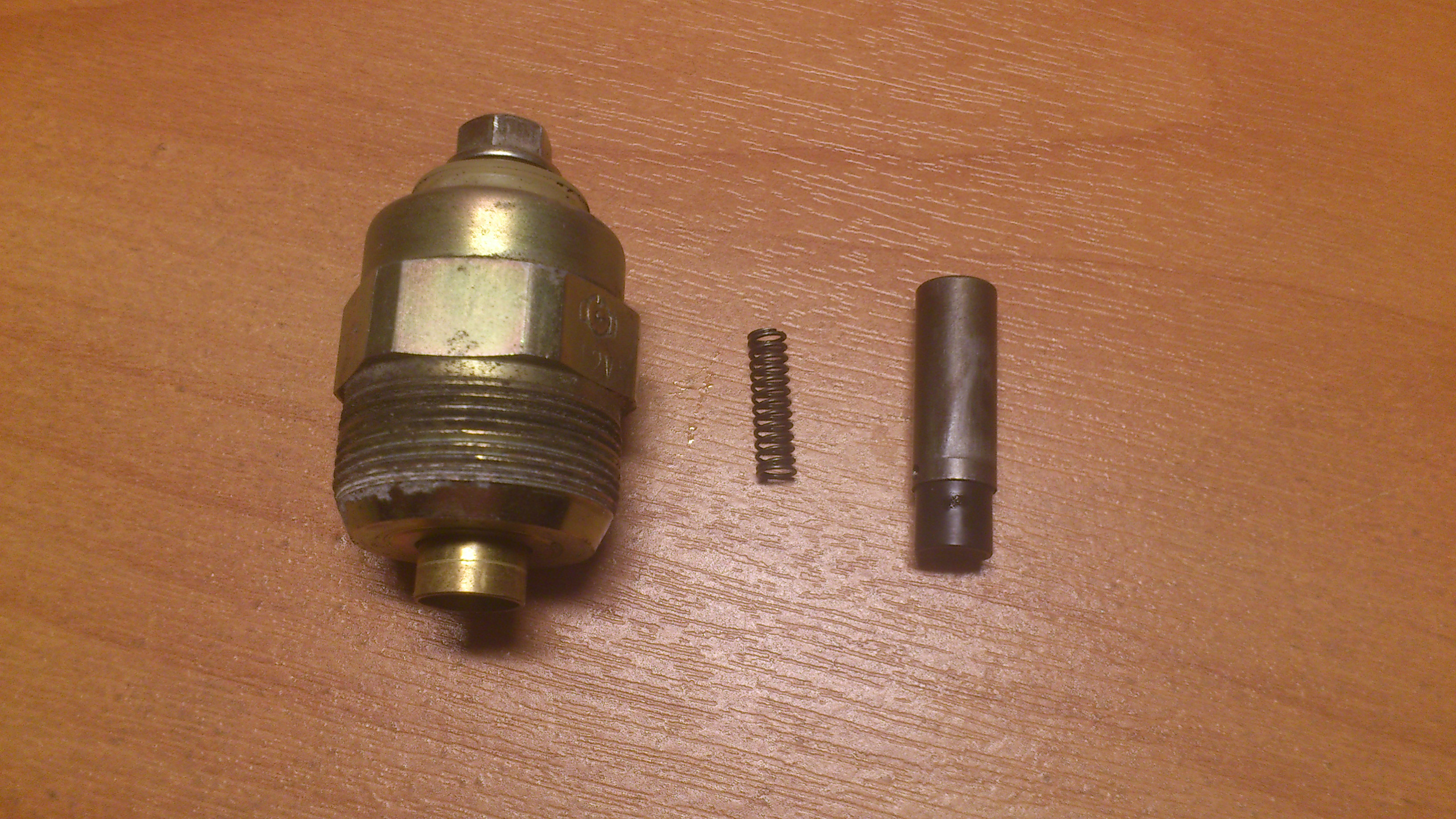 Клапан идёт "лысый" - без медной шайбы и резинового колечка. Гайки тоже нет, поставил от старого. В отличии от моего родного, анодированного (желтоватого), новый идёт просто оцинкованный. Щёлкают на воздухе по звуку практически одинаково. При снятой шайбе никакого "тук-тук" при потряхивании нет. Пока не заводил, отпишусь по результатам....
