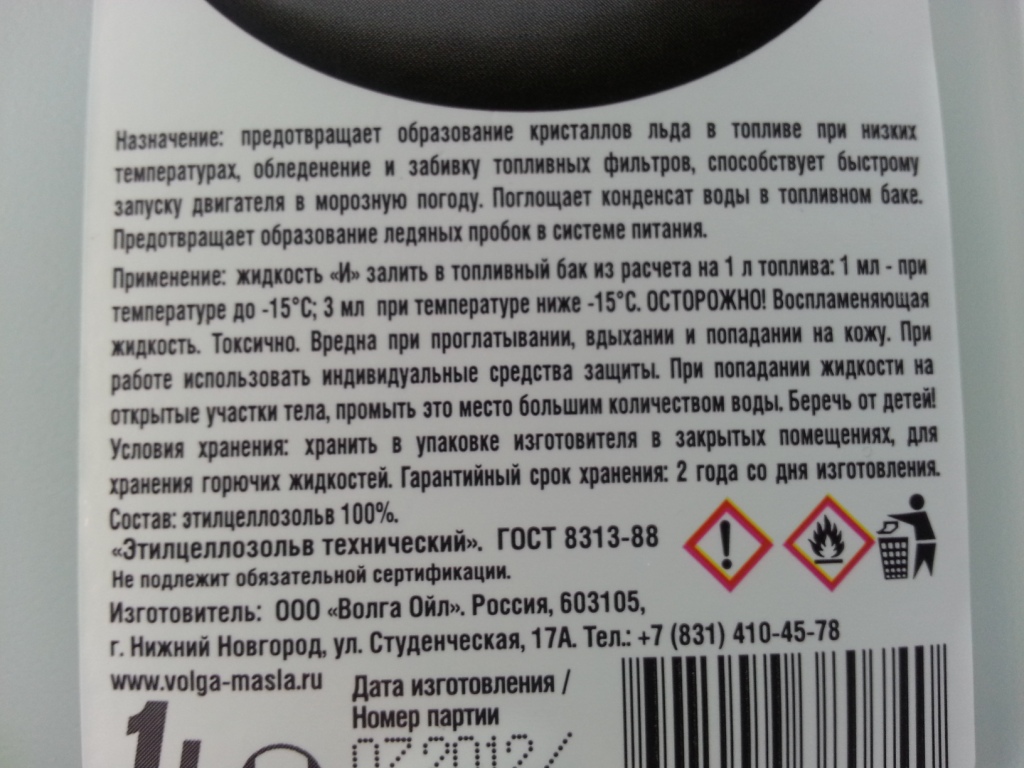 Спасибо.Понял.Пользовать в свою пока не буду.Но парочку в гараж прихватизирую,в хозяйстве всё пригодится.Саня= писал(а):Действительно для предотвращения кристаллизации воды в топливе (читай " в керосине"), Применять возможно для профилактики топливной системы. Но не постоянно. В машине возить не рекомендую. Токсично в замкнутых помещениях. При постоянном использовании жрет резиновые уплотнения