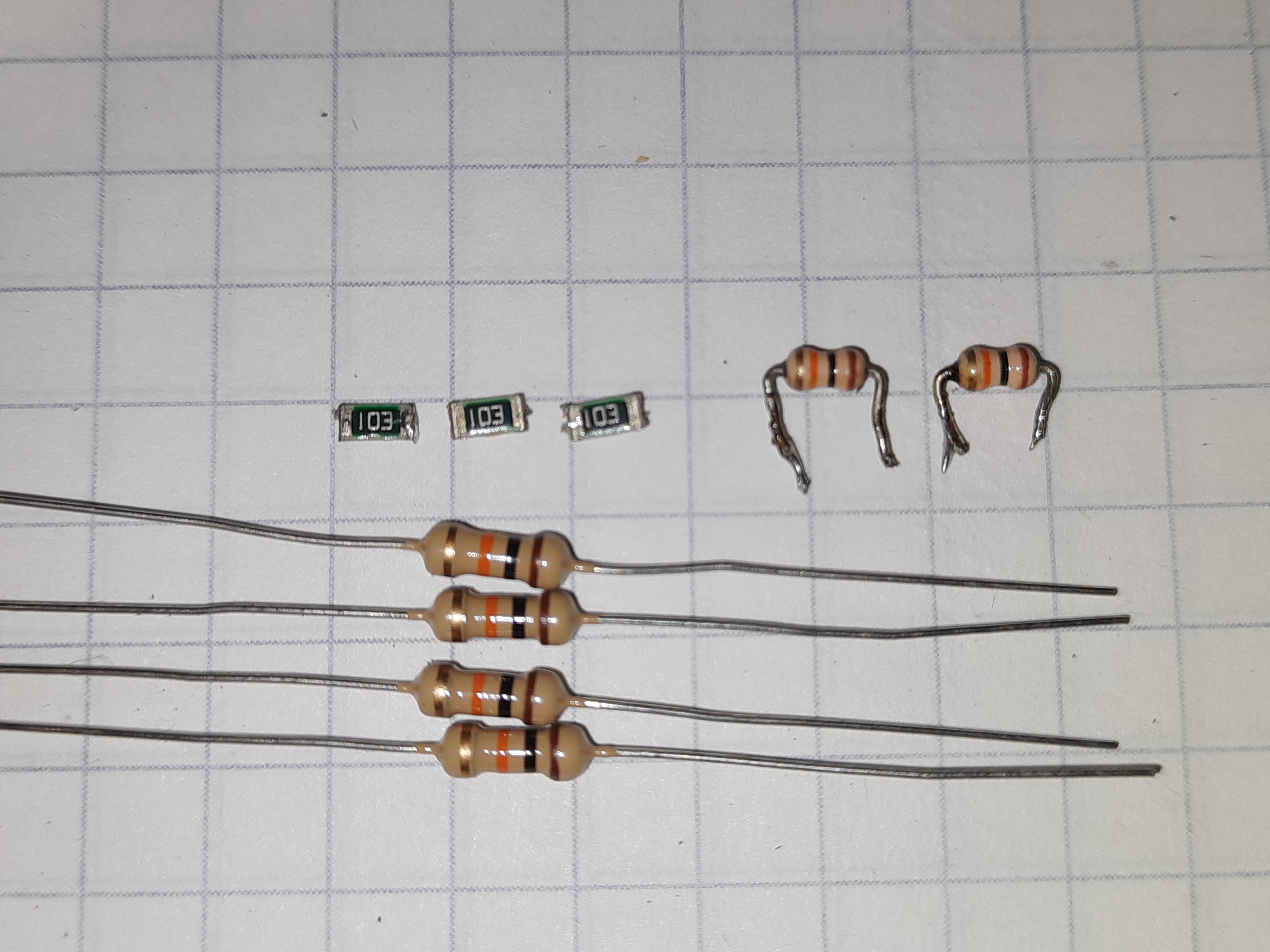 SMD-резисторы могли изменить свой потенциал от перегрева при пропайке слишком мощным паяльником. Ах, да, совсем забыл... Номинал этих резисторов - 10 кОм.