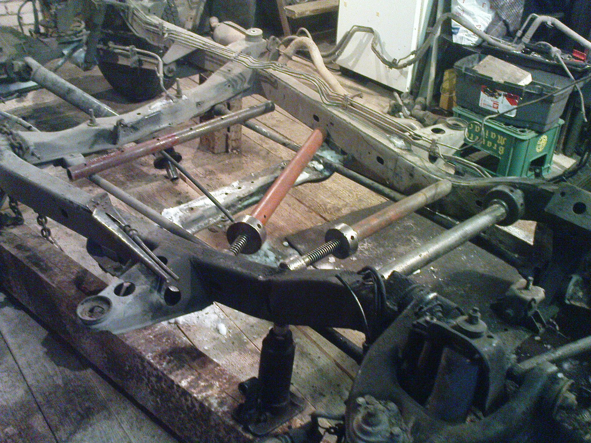 сегодня начали править раму и довольно хорошо пошла на место, использовали винтовые домкраты и гидравлический 8 тонн.