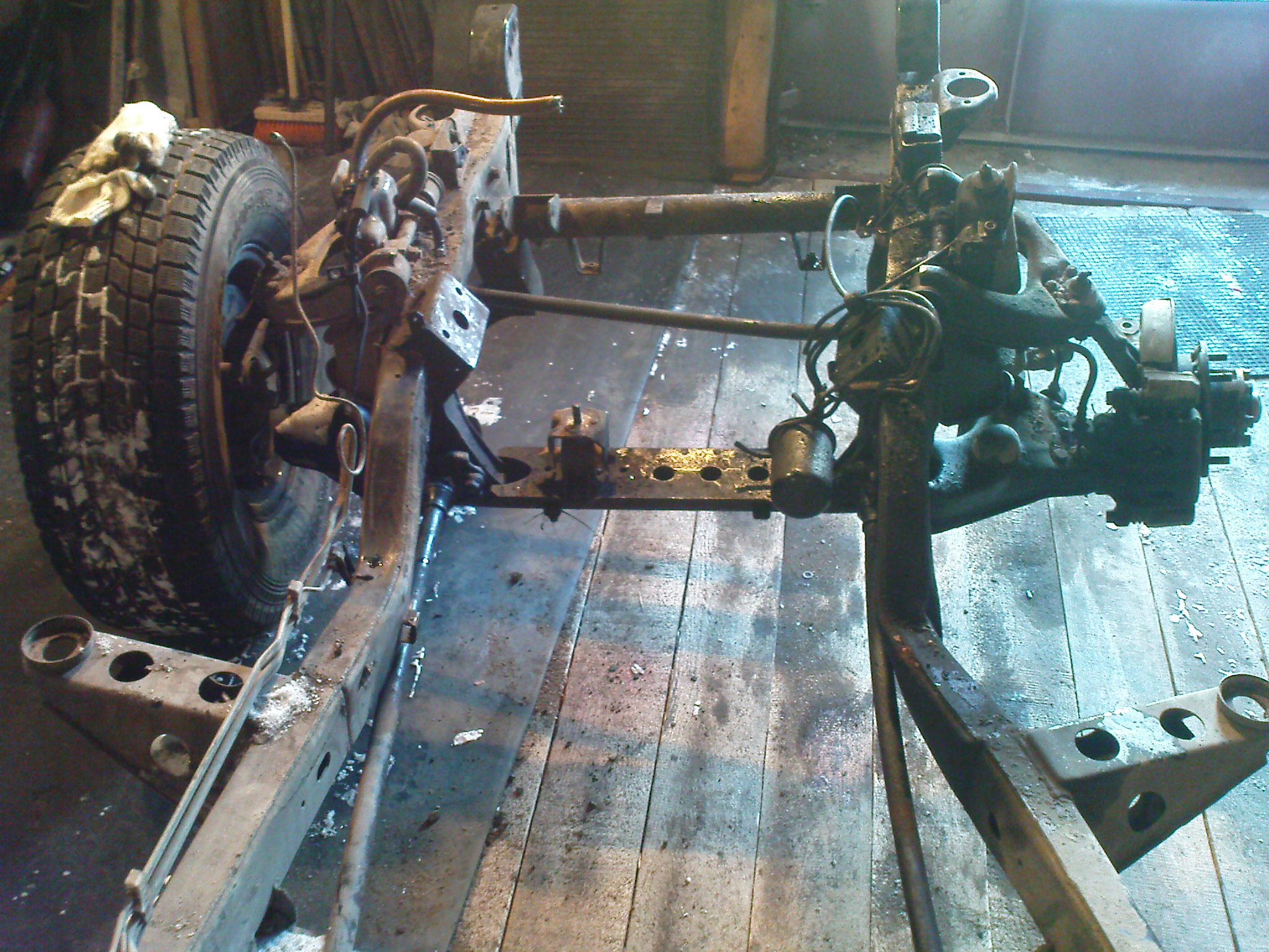 Сегодня сделал мало, т.к. встал поздно, да и вообще сегодня ломает, короче достал раму из под кузова и перегнал в другое место.