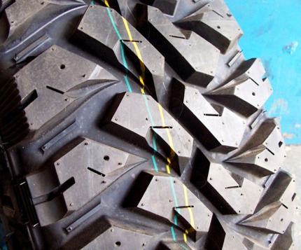 Гм... Зачётная резина. Интересно только как себя в грязи поведёт. Боюсь как раз своими заострёнными кромками будет соскальзывать. Грязюке нужен протектор строго перпендикулярный основанию, тогда грунтозацеп будет грунт грызть, а тут центральные грунтозацепы как то под углом получается на грунт накатываются...