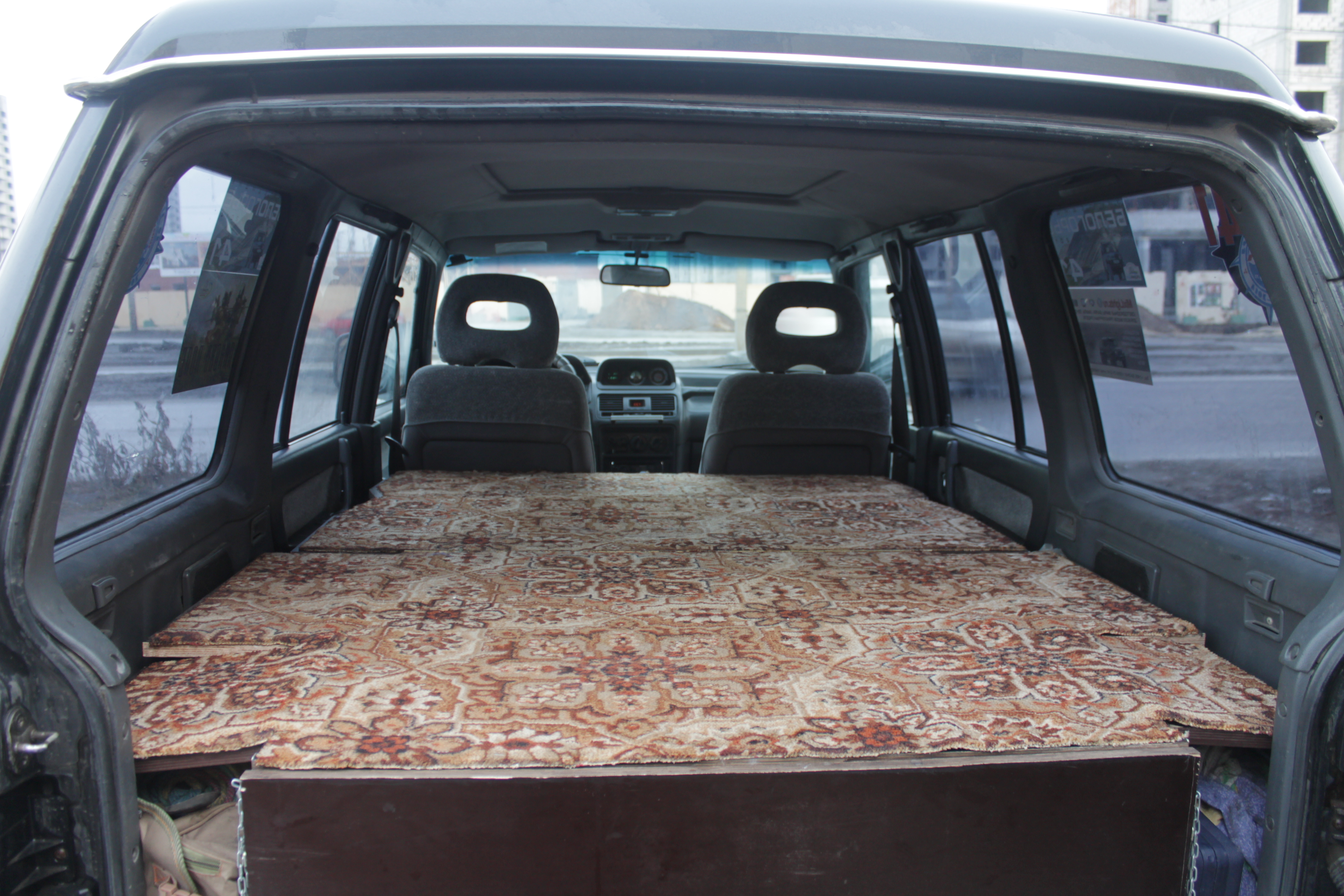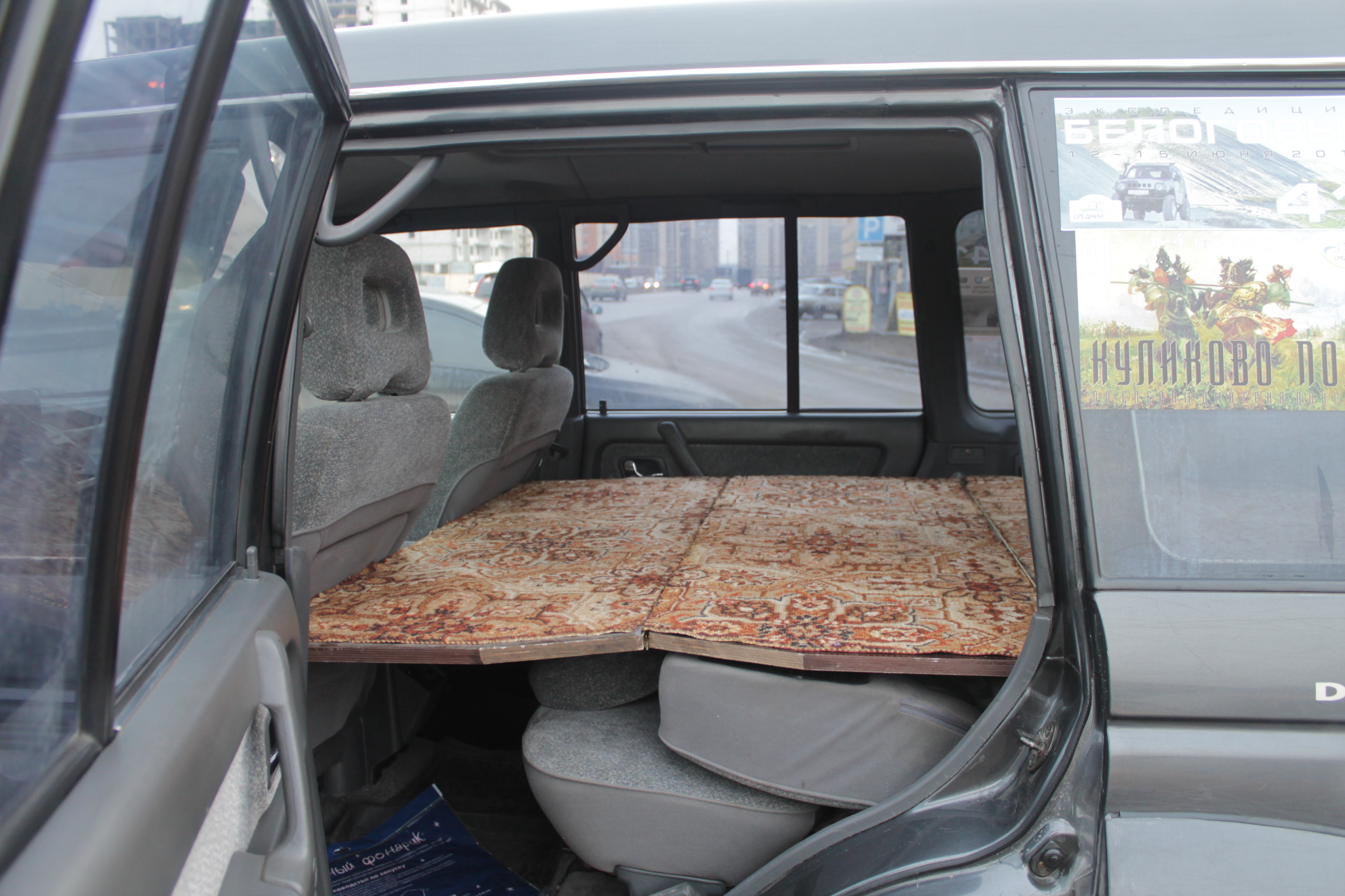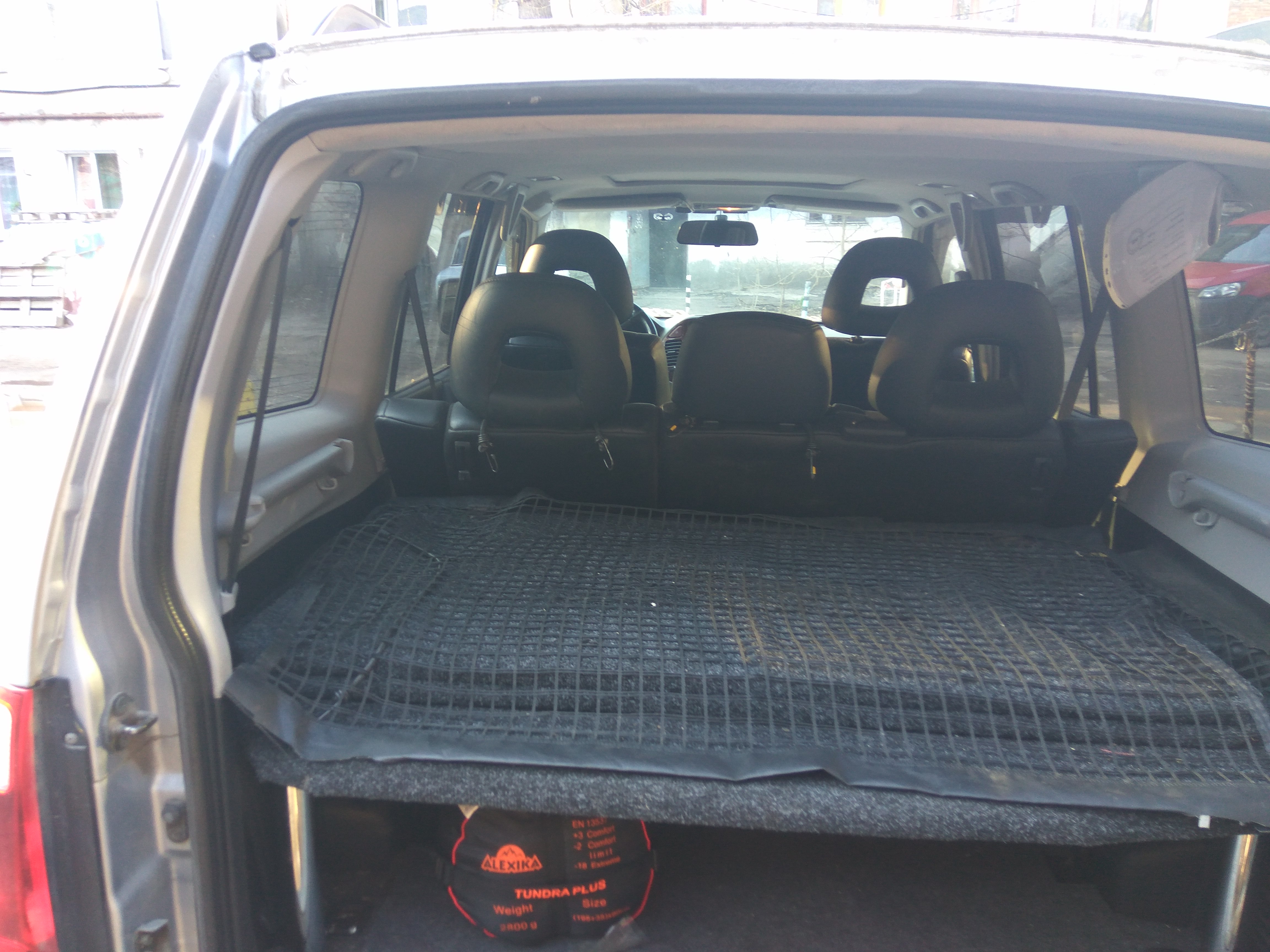 Высоту спалки подбирал такую чтобы спинка сложенных задних сидений была опорой для второй половины спальника. Сфоткать сейчас нет возможности.