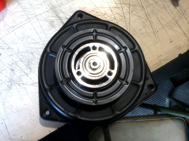 Внешне, бегло осмотрев электродвигатель вентилятора основного радиатора конденсора показалось что корпус его не разборный. Мытьё спиртом (через вентиляционную трубку), постукивание результатов не принесло…, хотя попытки подхватывания вращения были. В результате приобретается на разбоке вентилятор в сборе, устанавливается и он (ветилятор) работает ровно чуть больше срока гарантии, выданной на разборке…