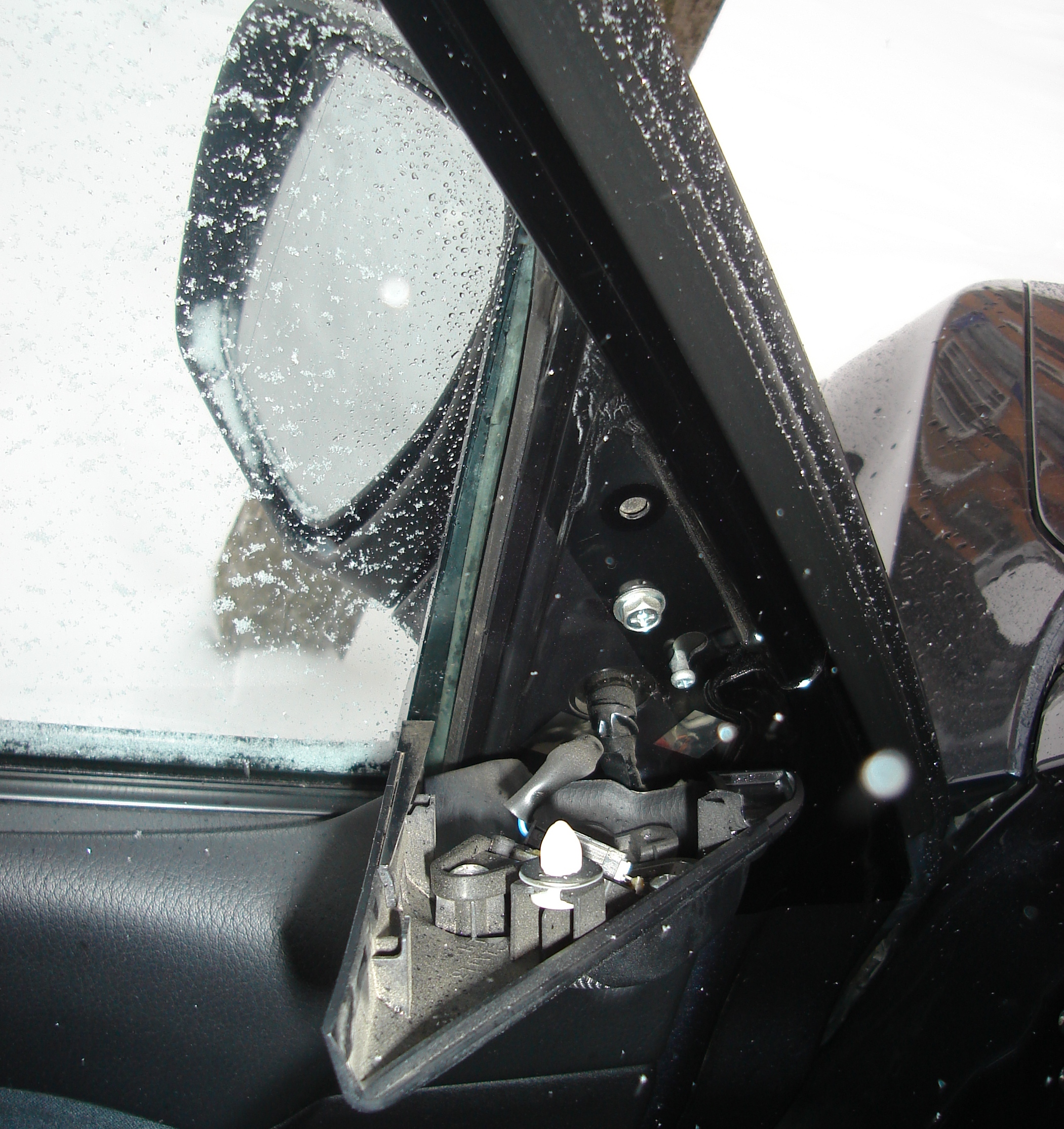 Подскажите, как снять зеркало с двери целеком? основной смысол я понимаю, надо снять треугольник обшивки двери, а под ним будут болты, которые и надо крутить.