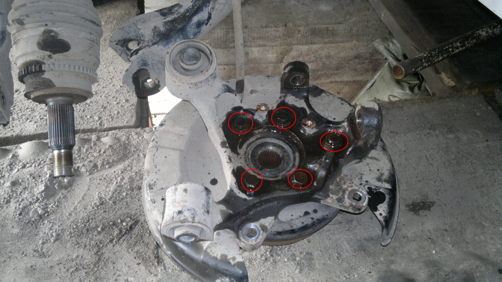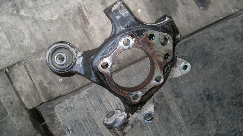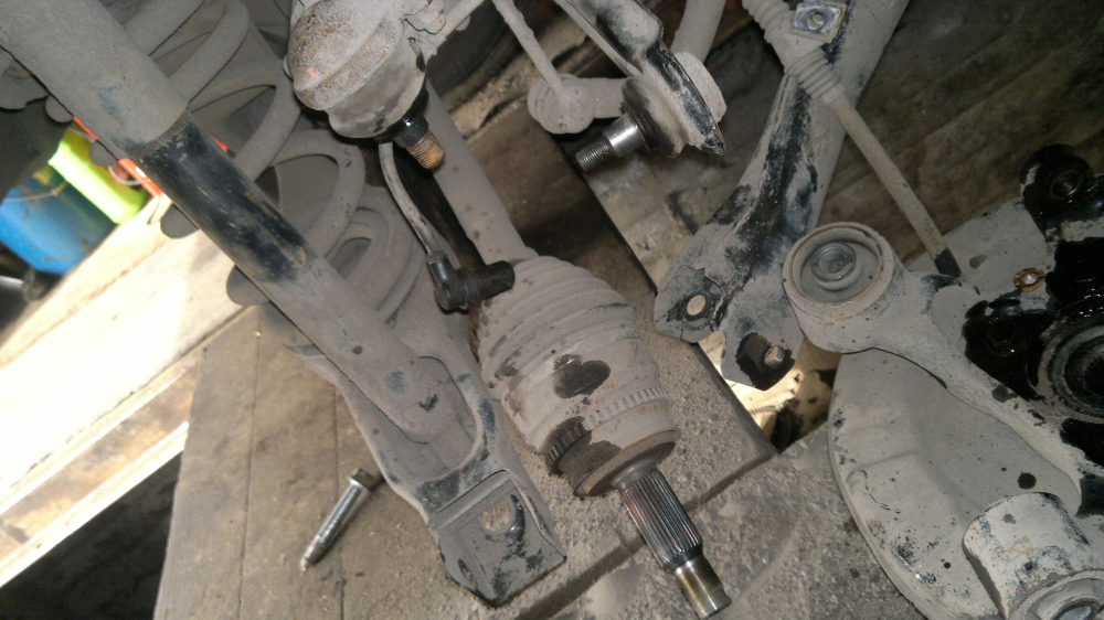 Датчик ABS тоже только после смачивания удалось вытащить.Долго освобождались пальцы шаровых,пришлось действовать старым дедовским способом-молотком,ибо каким-либо съёмником подлезти было куда геморнее. Также гемор с отсоединением кулака с искомым сайлентом от ступицы-все прикипело,а посадка оченно плотная и глЫбокая