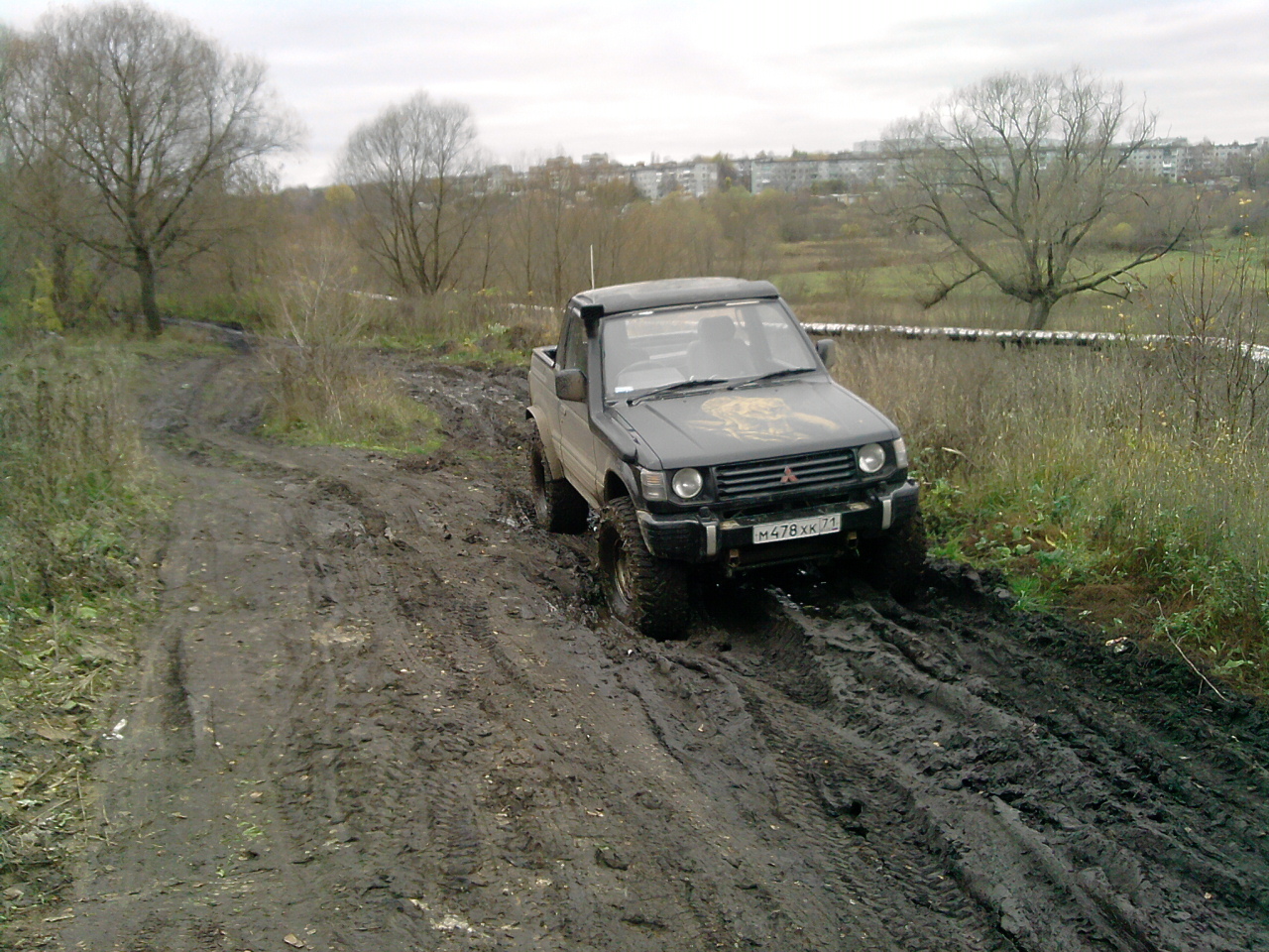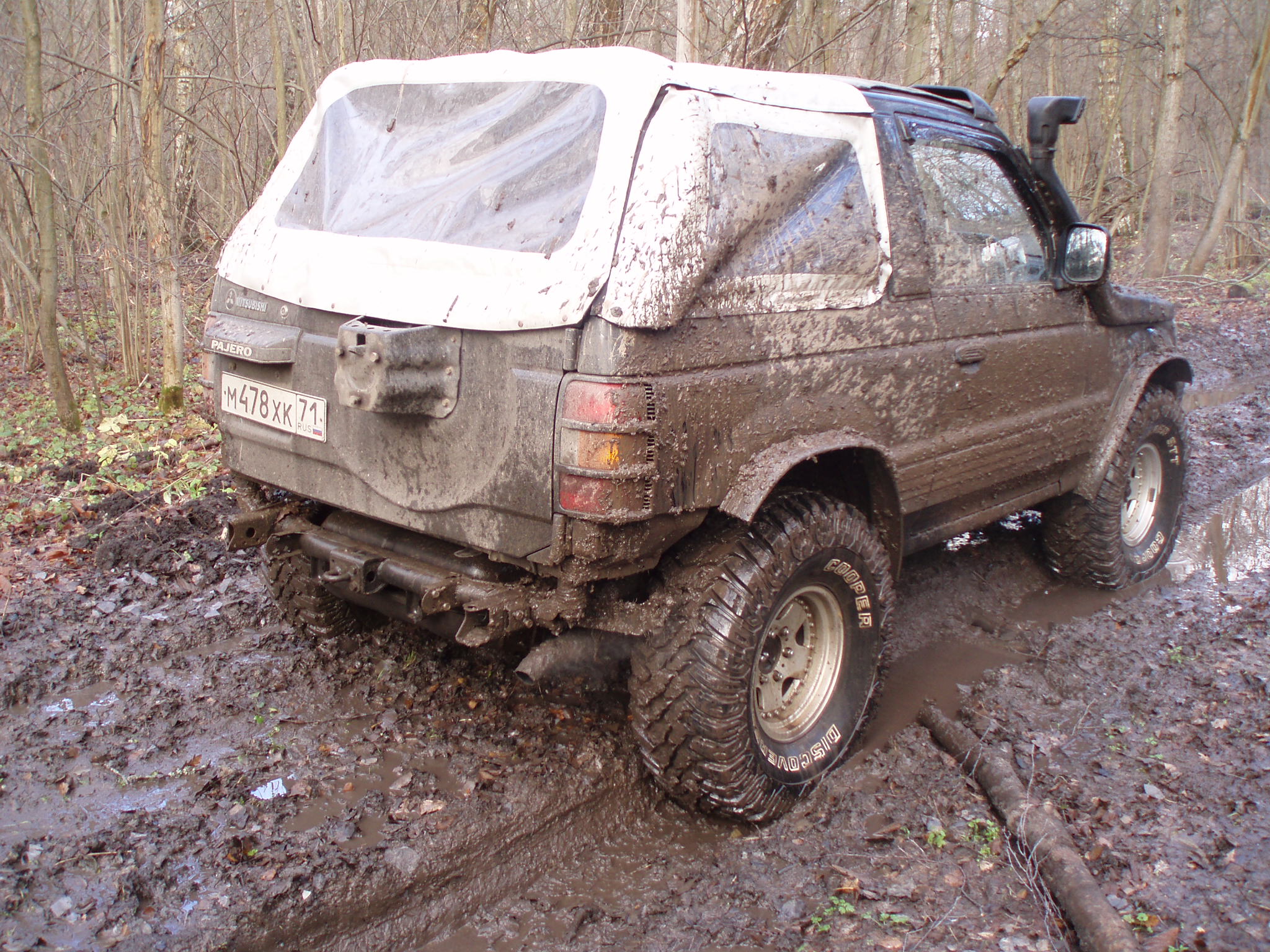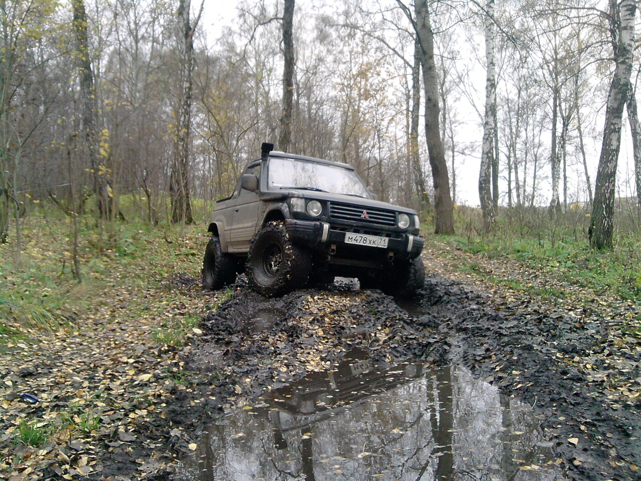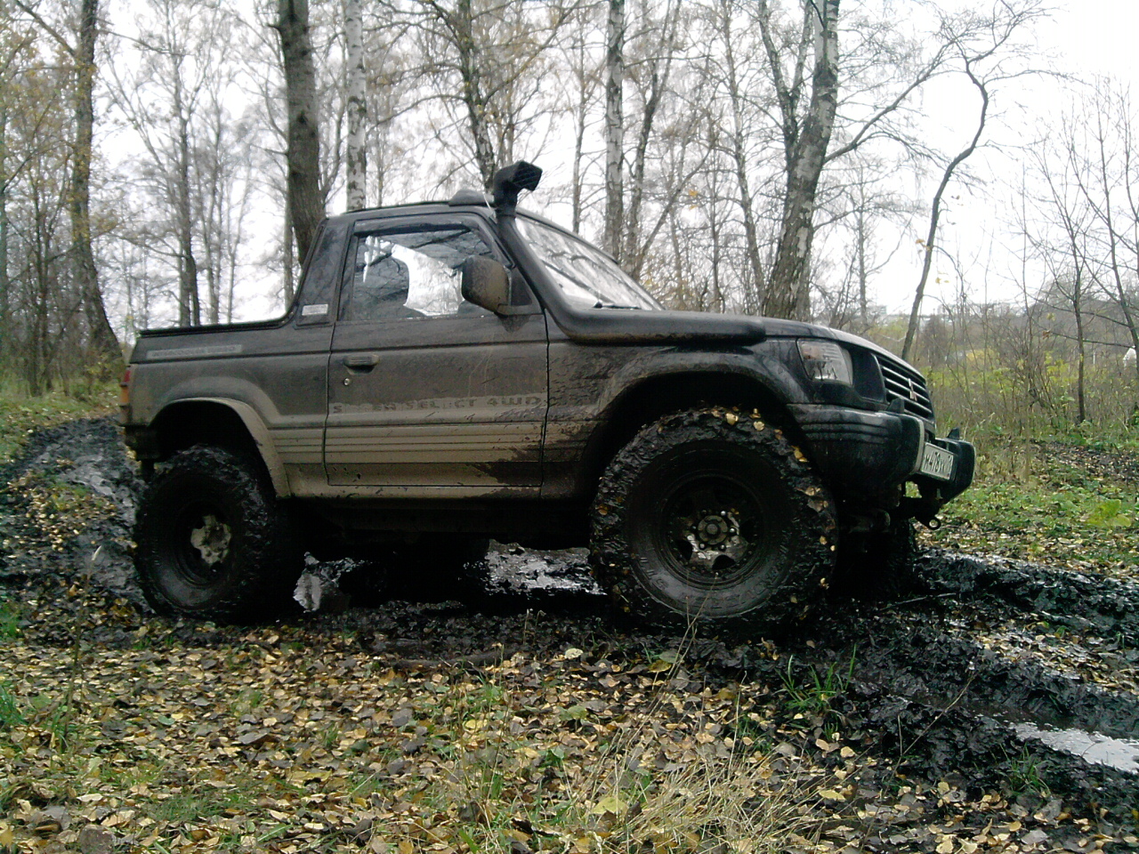 Сегодня отвез на перешивку тент, на обратном пути не удержался и залез в лес, побуксовать, проверить нету ли больше тресков и не проскакивает ли цепь. Грязи конечно там особо не нашел (хотя асфальт потом очень даже запачкал, прям стыдно даже), но это для 35 катков, зато ничего криминального не услышал.