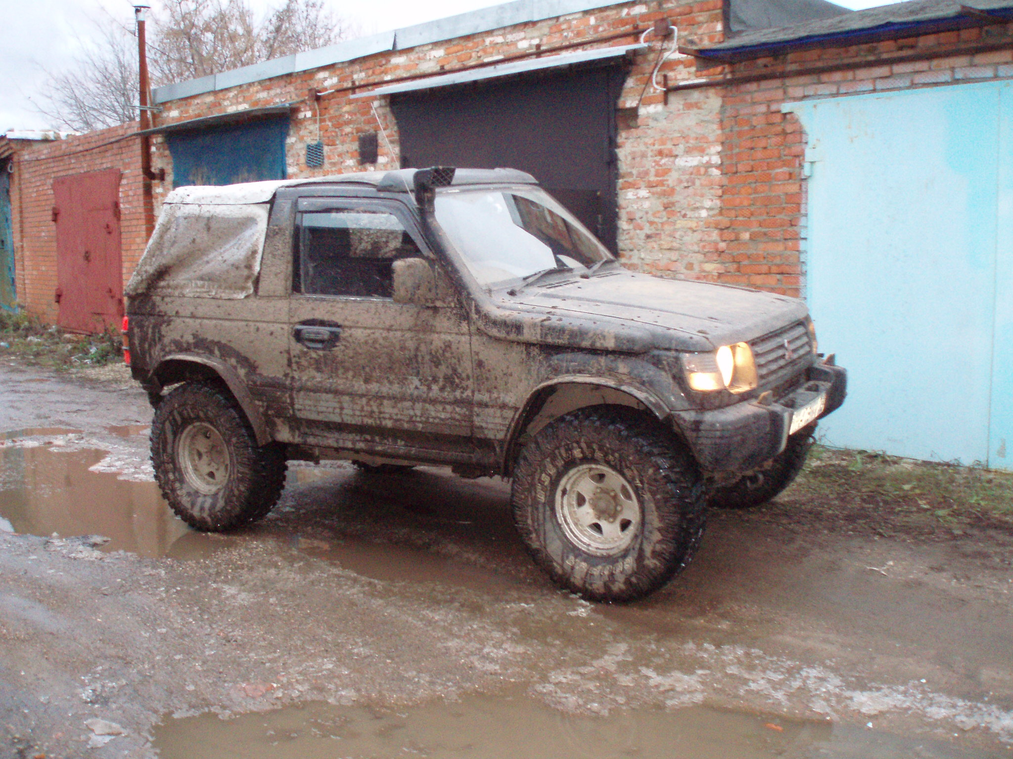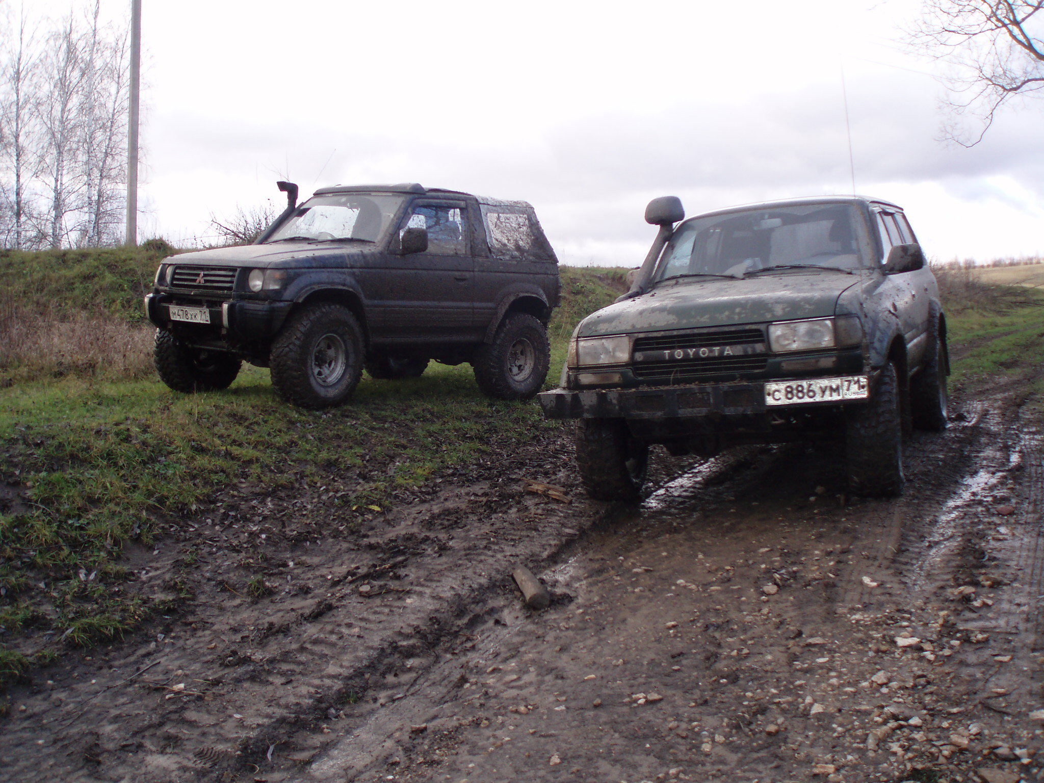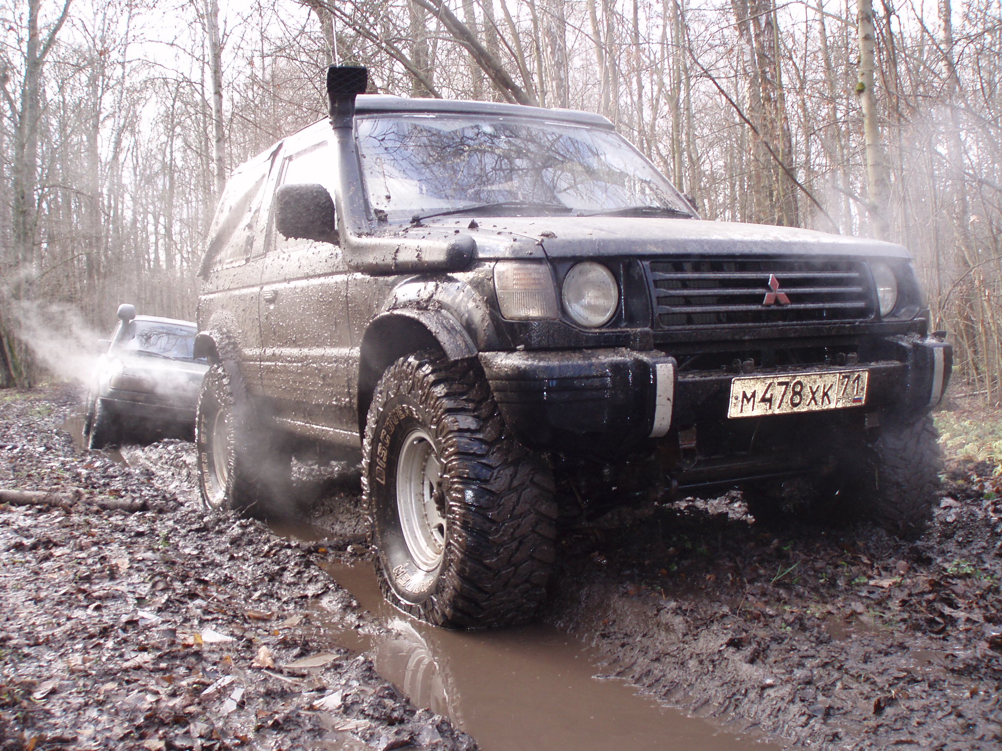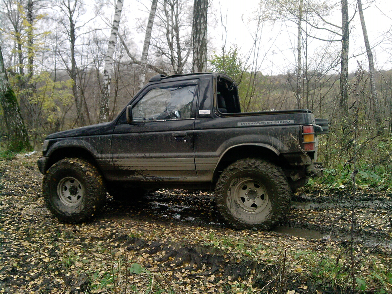 Сегодня отвез на перешивку тент, на обратном пути не удержался и залез в лес, побуксовать, проверить нету ли больше тресков и не проскакивает ли цепь. Грязи конечно там особо не нашел (хотя асфальт потом очень даже запачкал, прям стыдно даже), но это для 35 катков, зато ничего криминального не услышал.