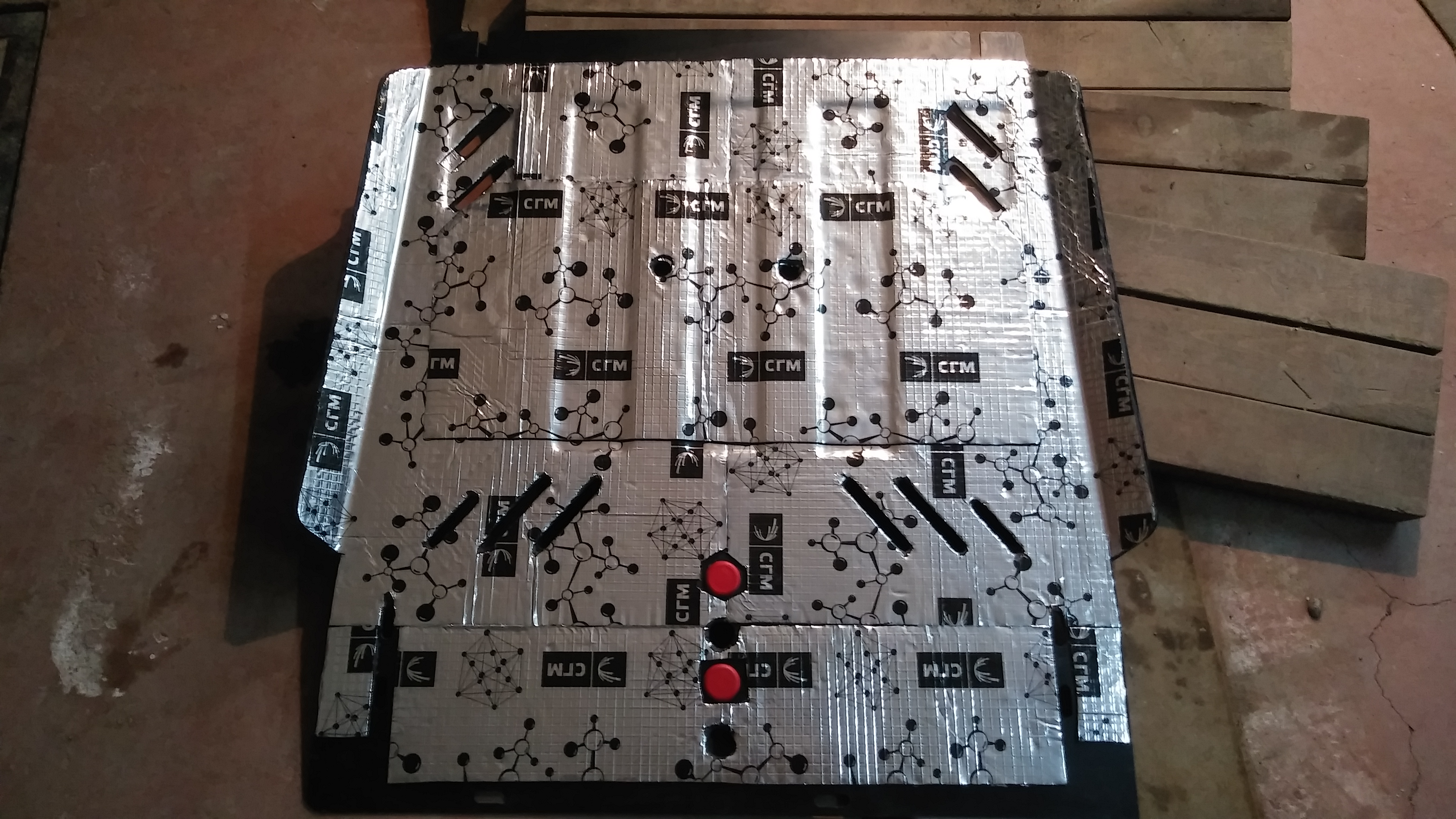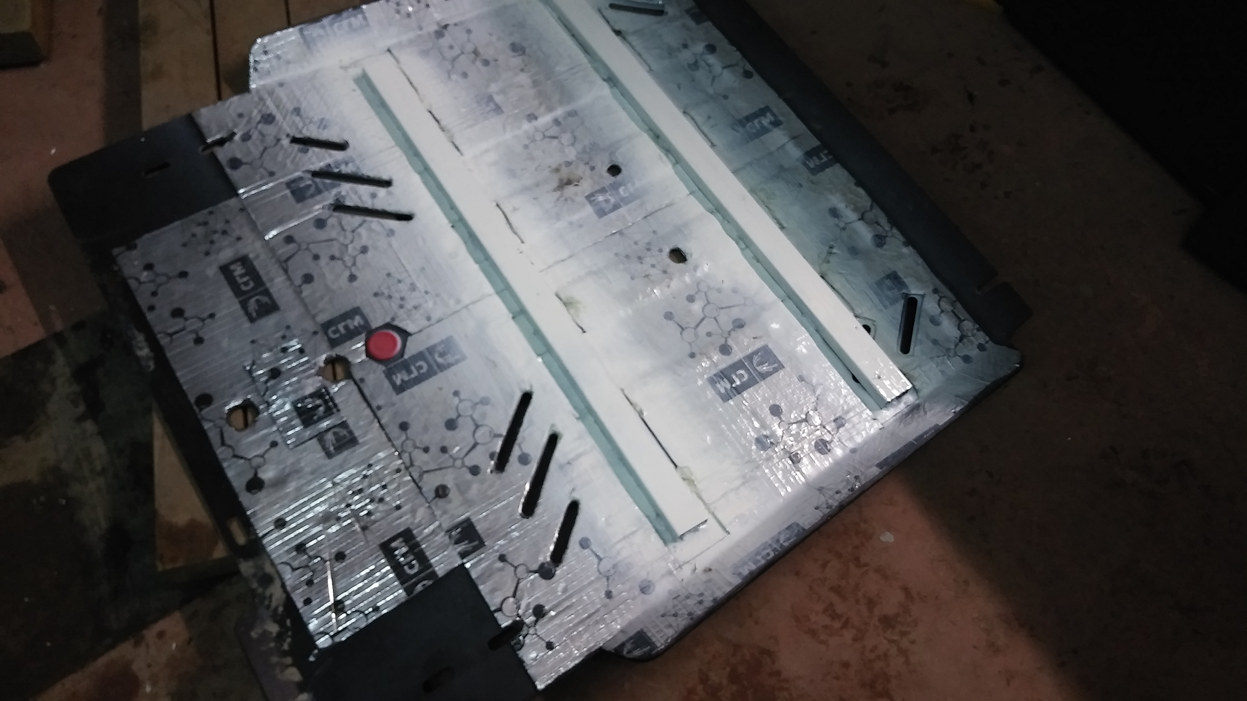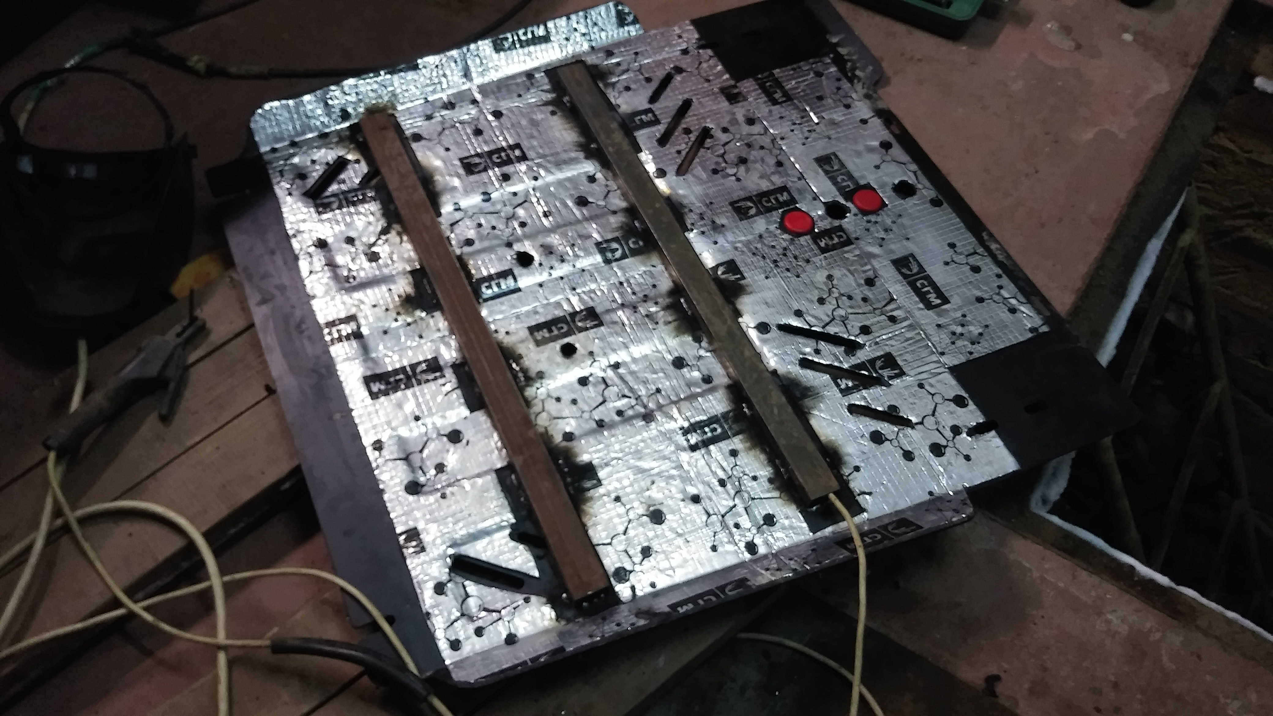 Сначала заклеил все самым толстым вибропластом. Стало тише брякать, но на тех же 1150 оборотов. Меня это разозлило и я решил приварить ребра жесткости из профильной трубы. Поставил, вроде резонанс сместился на 1250 и стал не такой сильный. Потом вспомнил, что когда купил машину и менял жидкости снял с выпускной трубы хомут, не найдя куда он прикручивается. А сегодня я нашел таки куда он падла прикручивается. Вобщем поставил его на место, все собрал и защиту с ребрами поставил. Проехался немного, вроде нормально стало, но все равно как будто бубнит что то) Буду масло менять заклею части защиты чти под мотором и радиатором тоже, а может еще и шумкой типа сплена.