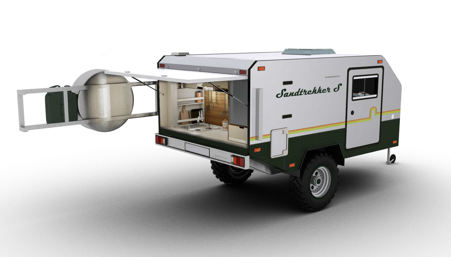 Сначала появилась задумка сделать внедорожный прицеп-каплю, но не по форме, а по содержанию: основной спальный отсек на двоих или троих, и кухонный отсек сзади. При этом, учитывая особенности нашего климата, было решено использовать опыт австралийцев — усиленная рама, независимая подвеска, каркасный утепленный кузов.