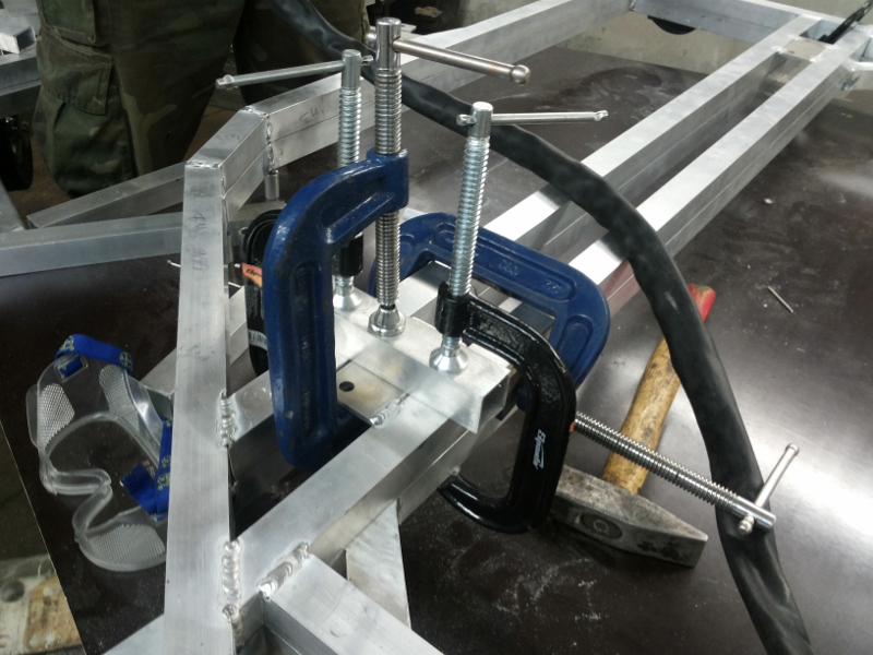 Нет большого смысла выкладывать фото всего процесса, но одну показательную фотку я все-таки обнародую. Это то, как варится алюминиевый каркас. Каждый мало-мальский шов требует закрепления свариваемых деталей во всех плоскостях, чтобы не повело. Если после этого кто-то мне попытается сказать, что сделать такой за пару недель — говно-вопрос, или что австралийские прицепы слишком дорогие, и можно сделать гораздо дешевле, я просто пошлю его... в магазин прицепов. Пусть покупает себе телегу тысяч за 60 и наслаждается жизнью!