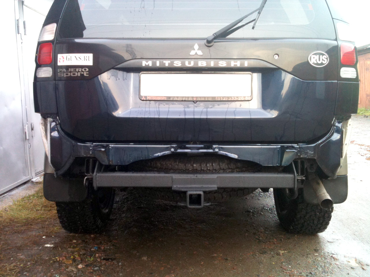Но есть один существенный минус: фаркоп идёт конкретно под Монтеро Спорт, на Паджеро Спорт возникли проблемы с установкой противотуманных фонарей (т.к. они значительно крупнее в глубину и ширину, чем катафоты у Монтеро Спорт)