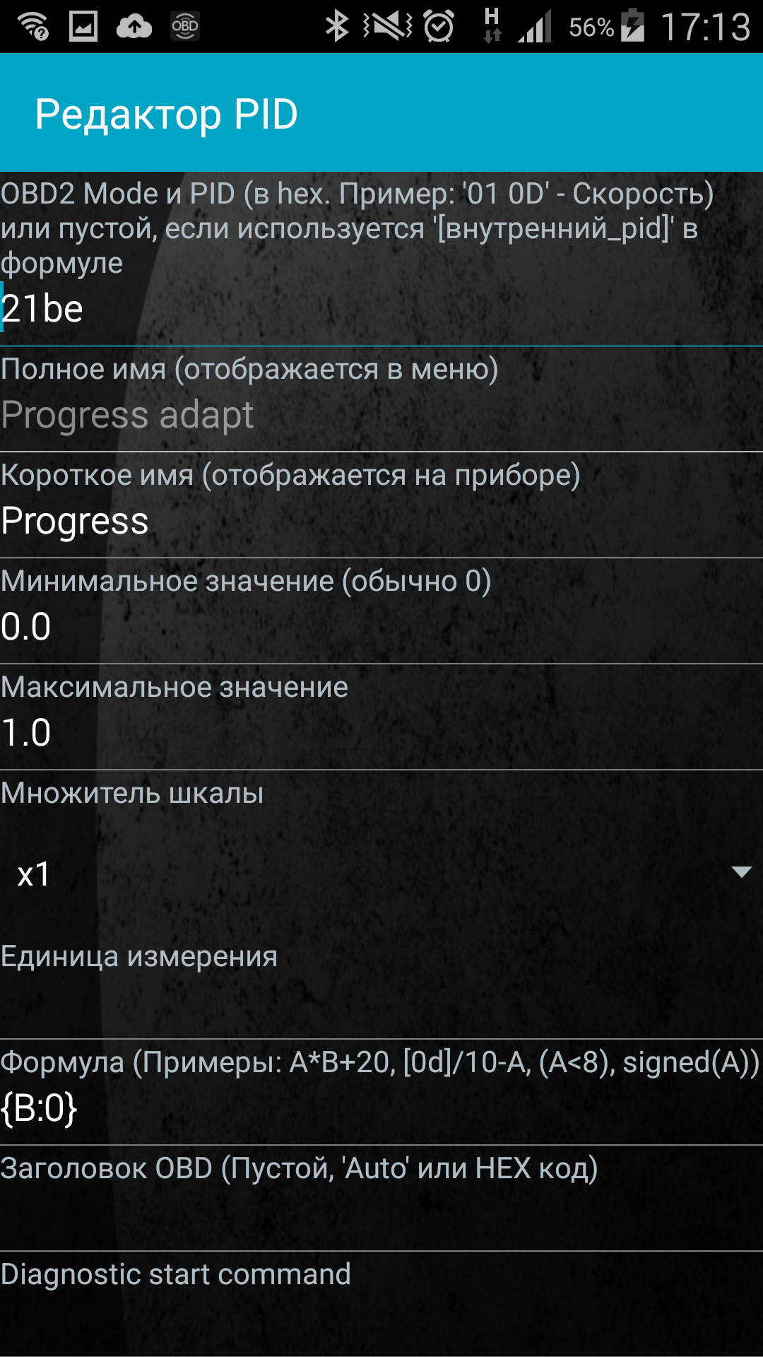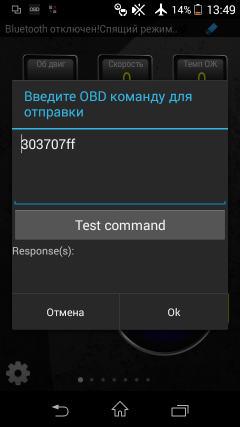 тип прибора "Кнопка" --> "Послать OBD команду"